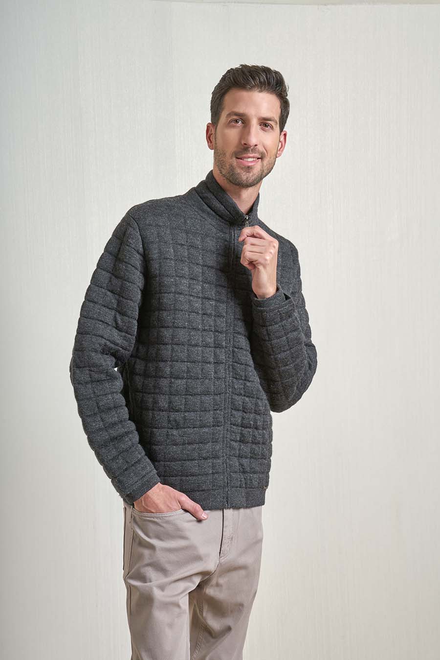 Elegante y funcional cardigan, con efecto quilted. Un look moderno en la fibra más suave, sostenible y durable. | Material predominante: Baby Alpaca & Algodón
