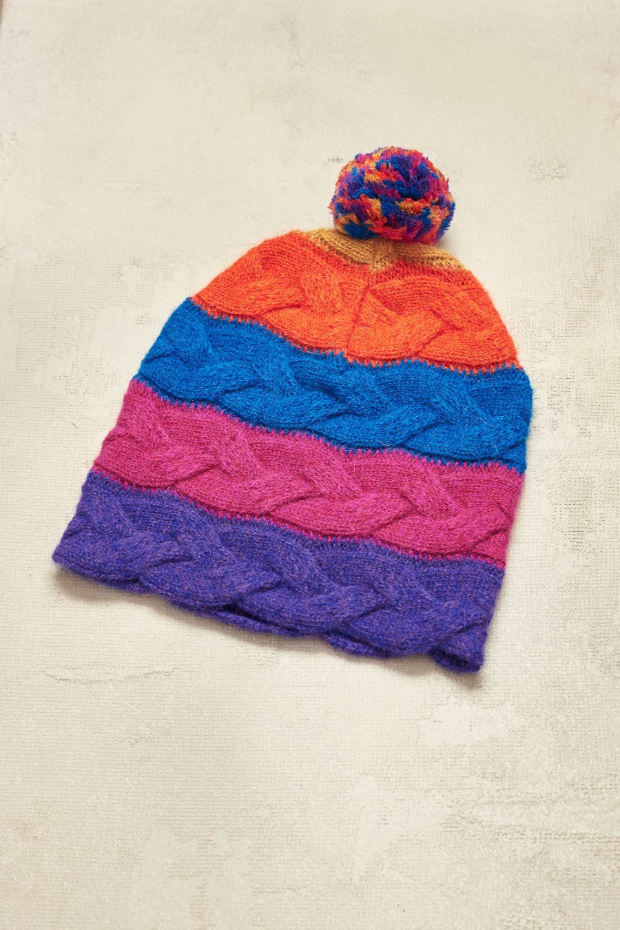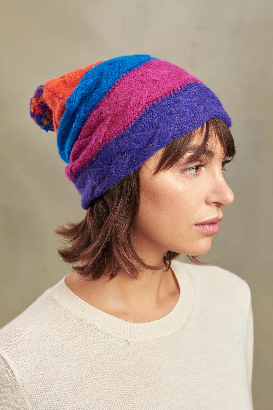 Gorro con franjas en diferentes tonalidades y detalle de pompón. Un colorido accesorio para cualquier ocasión. | Material predominante: Baby Alpaca