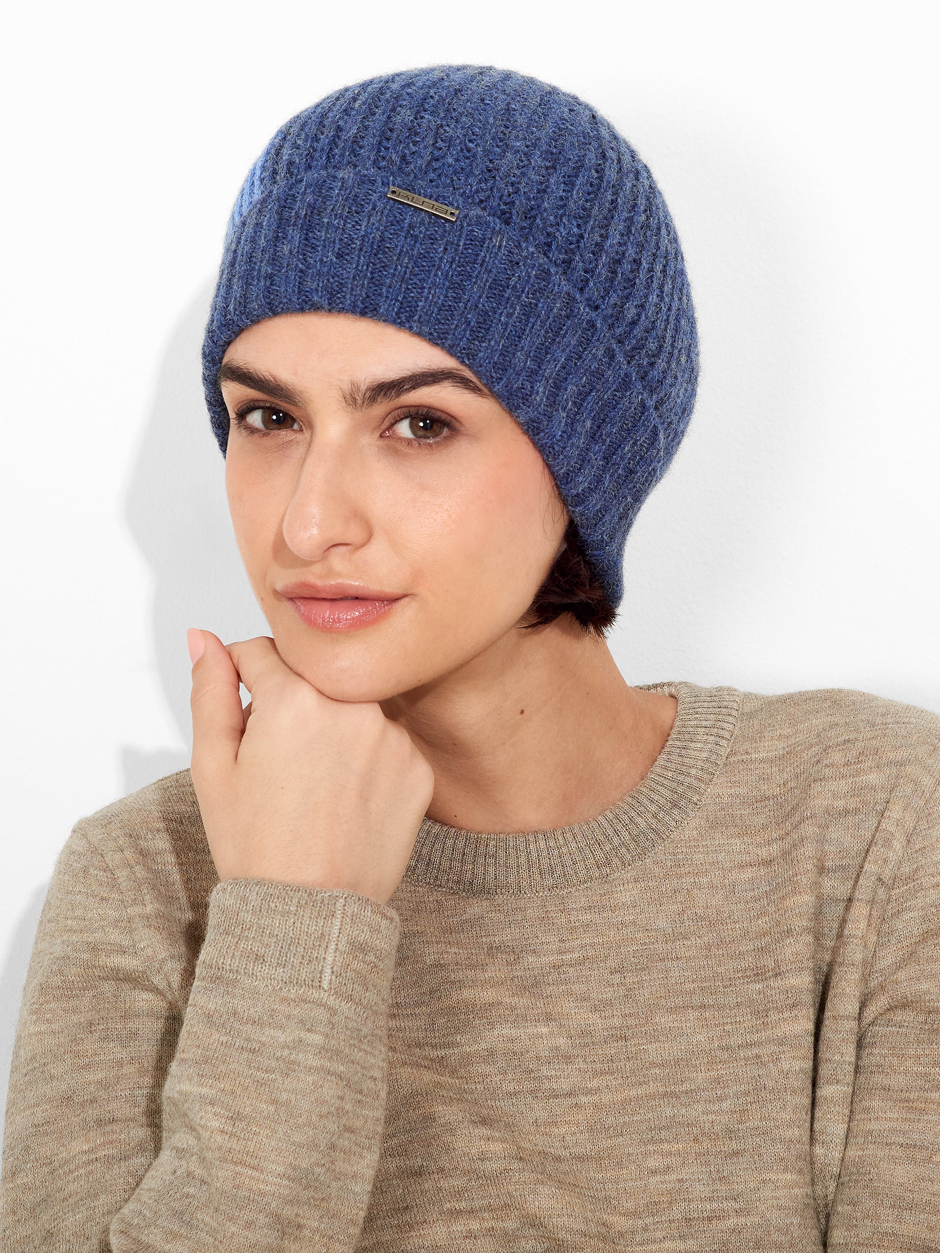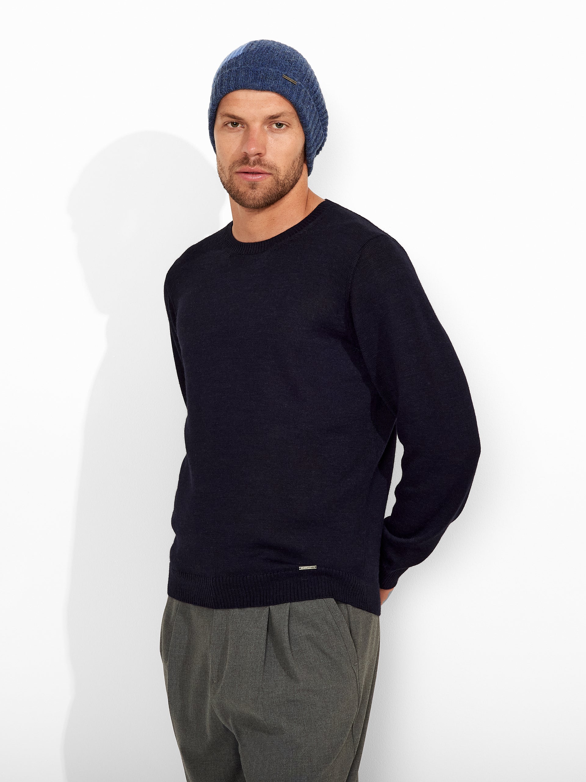 Gorro Zut en tonalidad azul, de forma ajustada y diseño clásico. Elaborado en un tejido de punto acanalado vertical que aporta confort. Confeccionado en baby alpaca, brinda suavidad y calidez. | Material predominante: Baby Alpaca