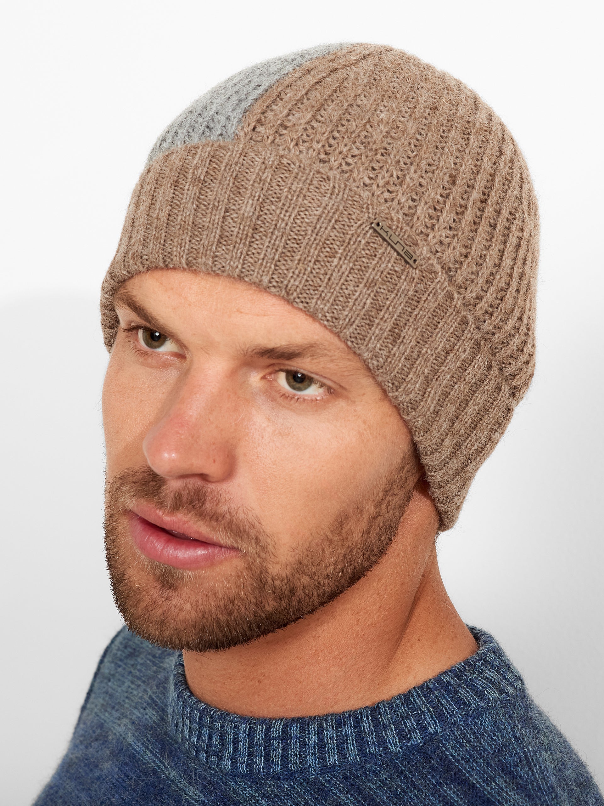Gorro Zut en tonalidad beige, de forma ajustada y diseño clásico. Elaborado en un tejido de punto acanalado vertical que aporta confort. Confeccionado en baby alpaca, brinda suavidad y calidez. | Material predominante: Baby Alpaca