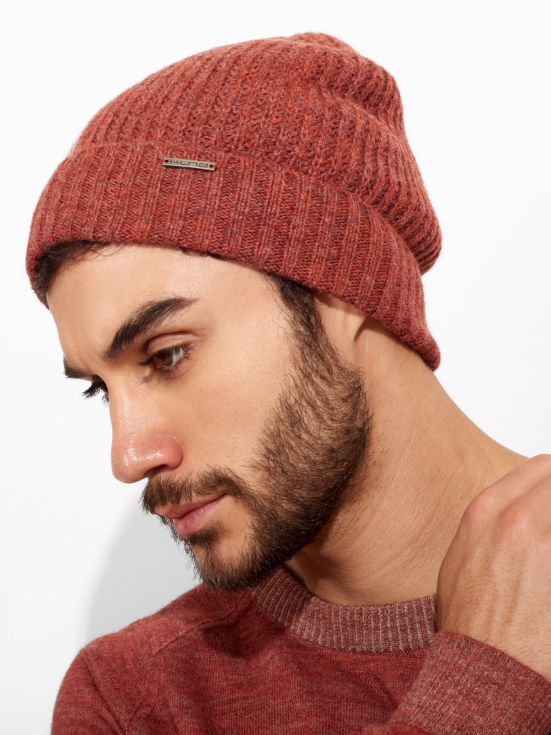 Gorro Zut en tonalidad rojo, de forma ajustada y diseño clásico. Elaborado en un tejido de punto acanalado vertical que aporta confort. Confeccionado en baby alpaca, brinda suavidad y calidez. | Material predominante: Baby Alpaca