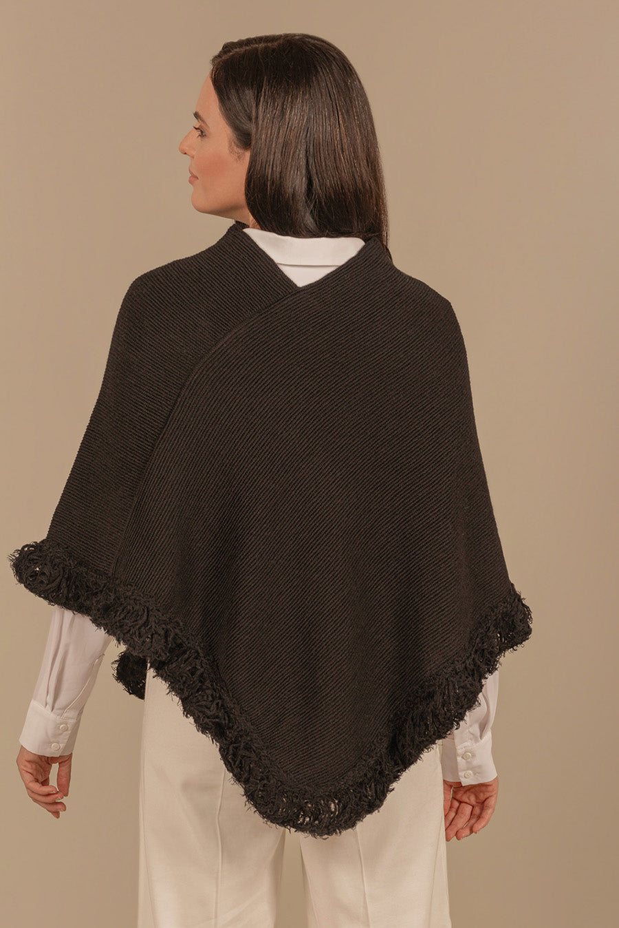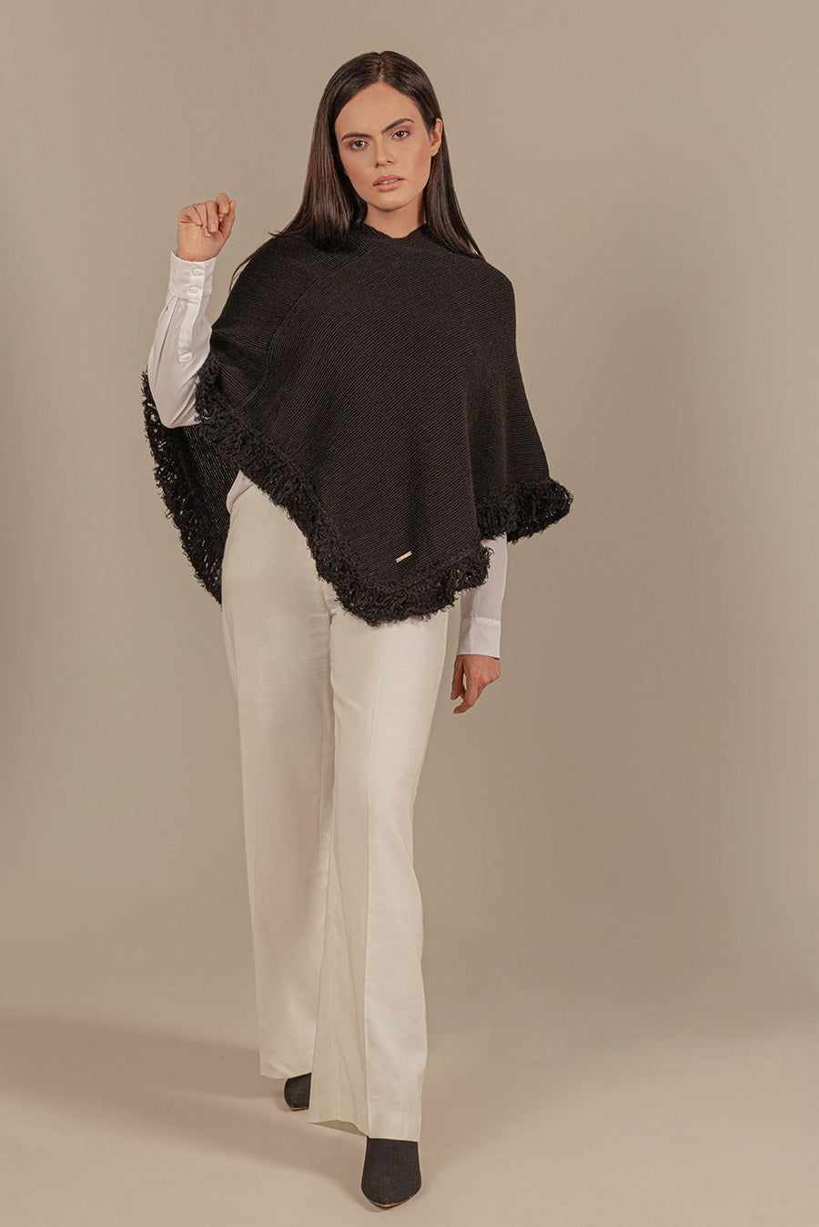 Nuestro poncho Ufficio combina dos lindas texturas y se convierte en la opción perfecta para demostrar elegancia y distinción. | Material predominante: Baby Alpaca