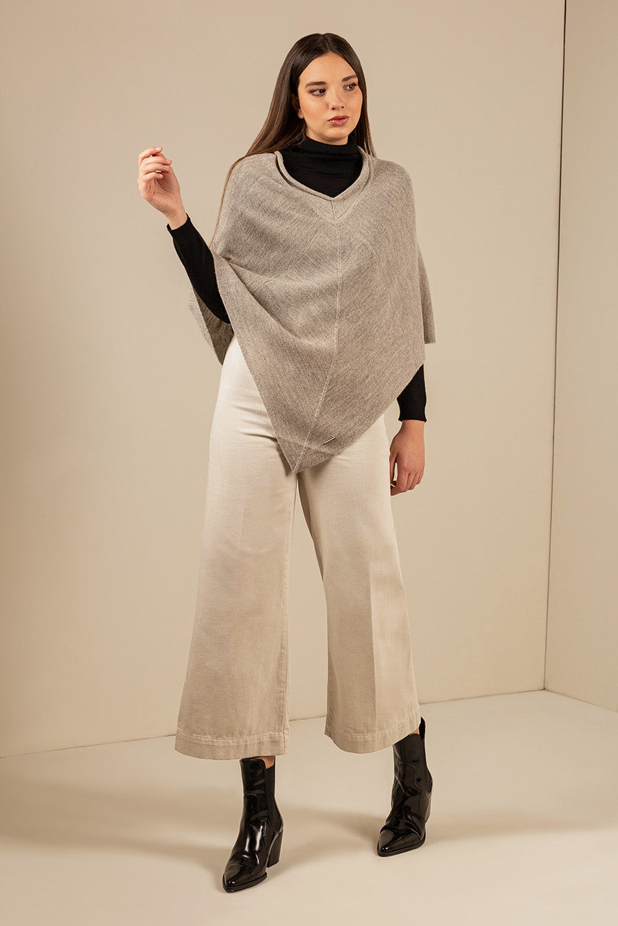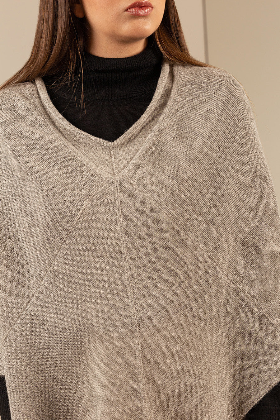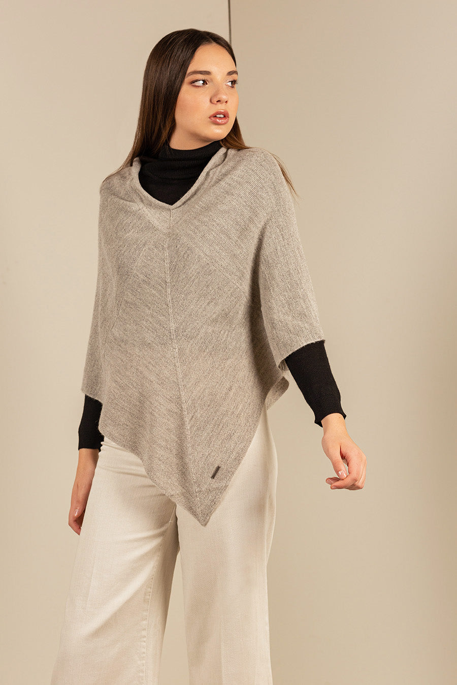 Nuestro poncho Ulala de diseño casual, escote redondo y singular caída, está elaborado en baby alpaca y es perfecto para salidas casuales. | Material predominante: Baby Alpaca
