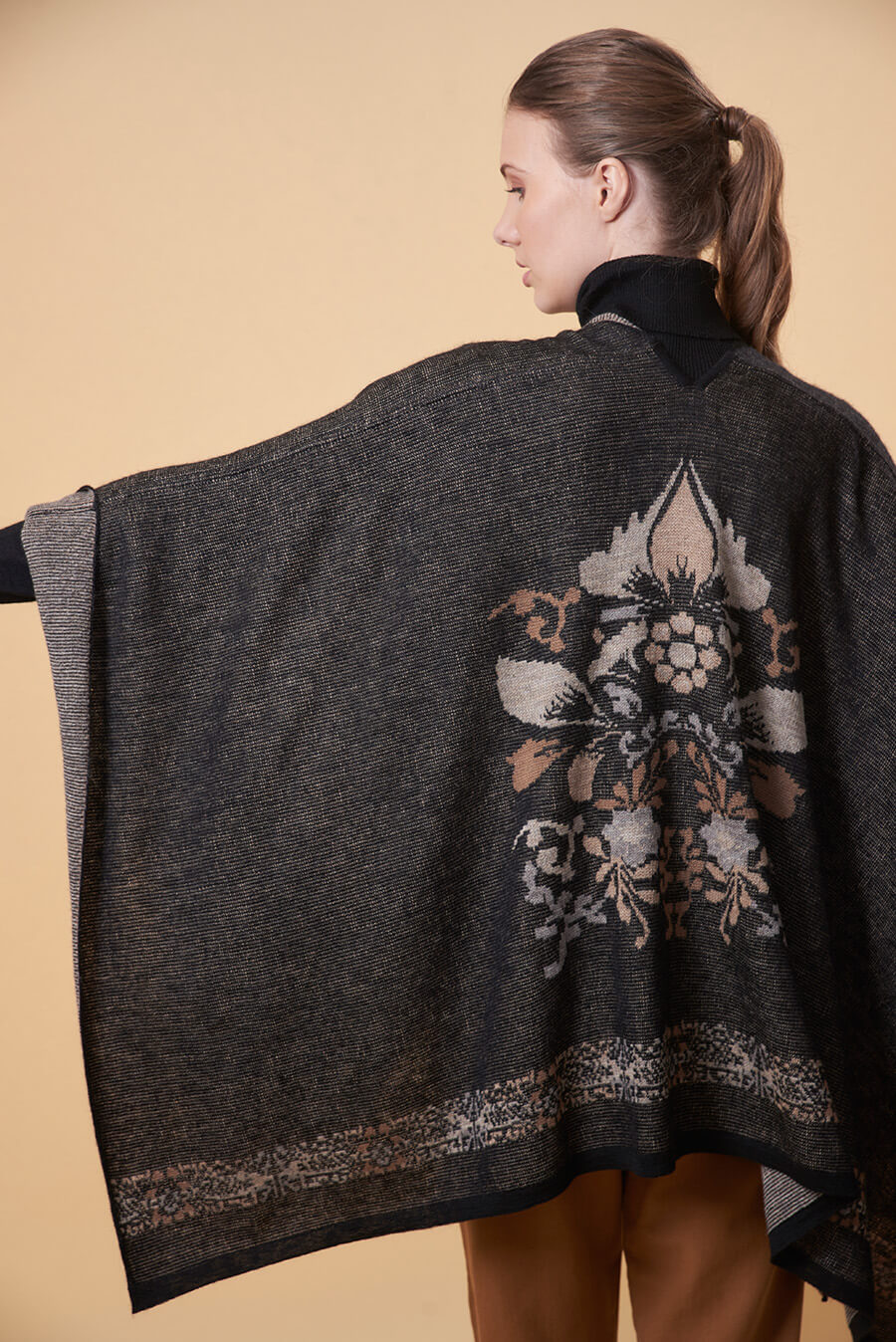 Delicada prenda, con gran movimiento, inspirada en las pinturas de los retablos peruanos. Nuestro poncho Ultrachic es una de las prendas mas vistosas e importantes de esta nueva colección. | Material predominante: Baby Alpaca