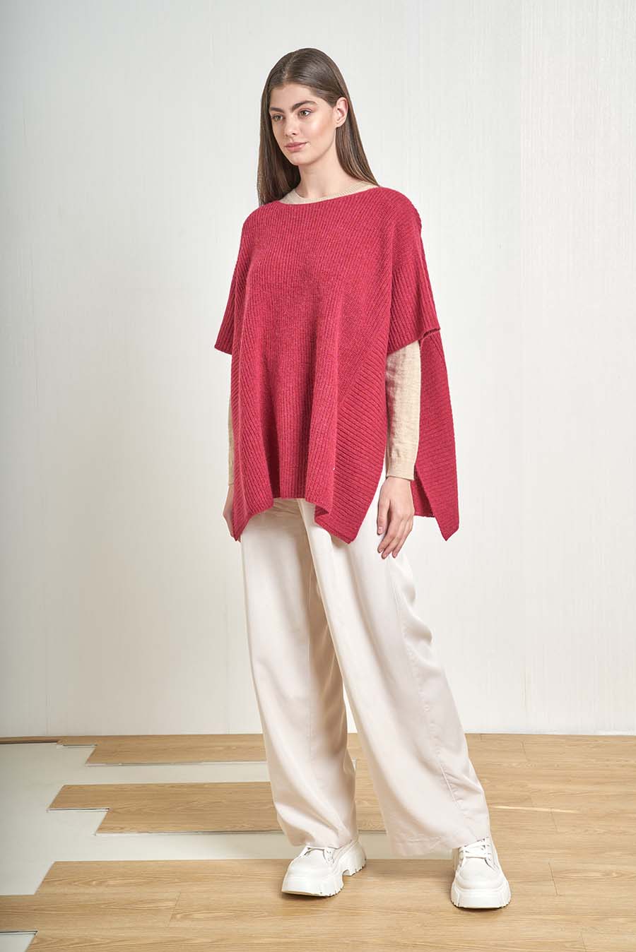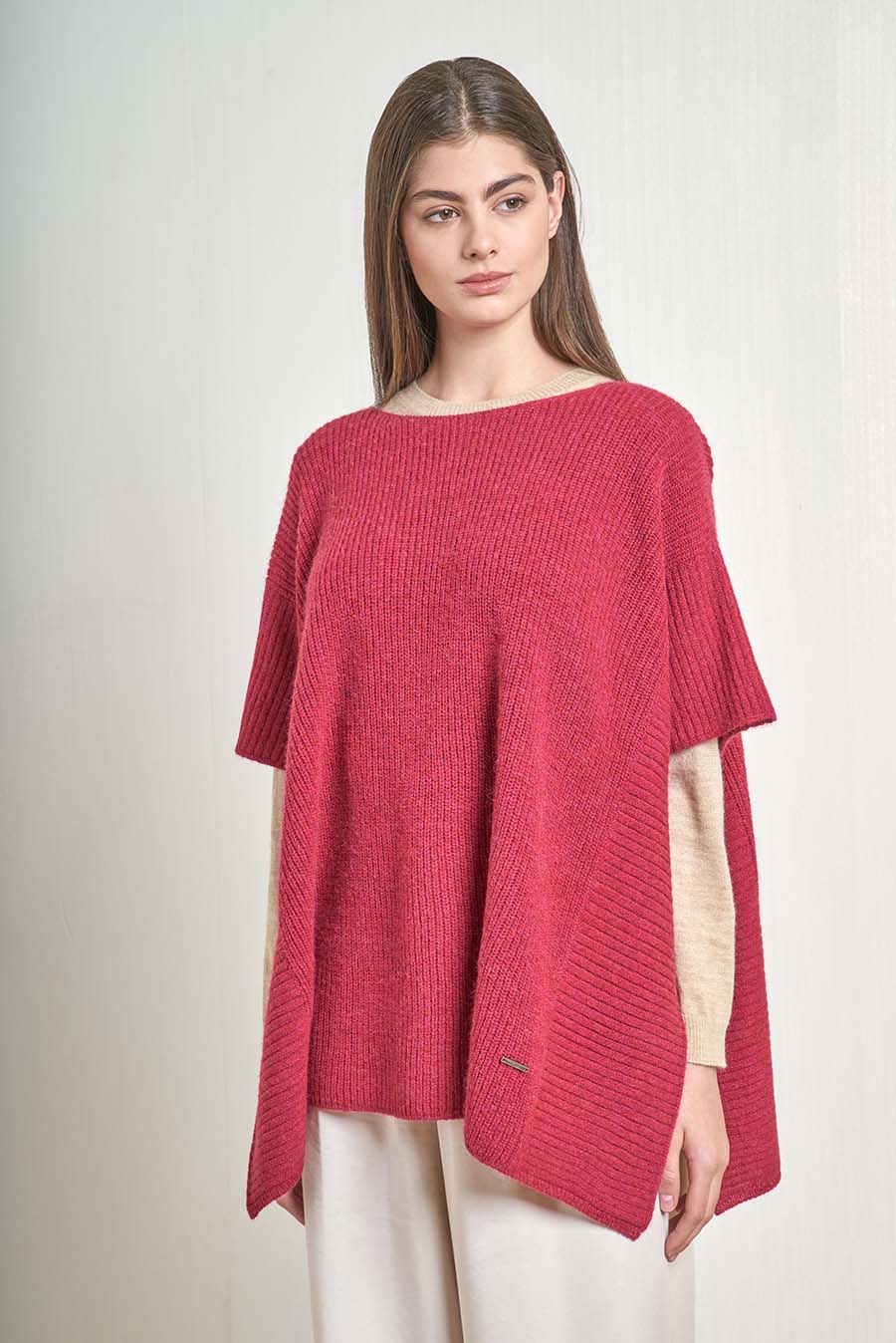 Este amplio poncho tejido en punto medio inglés es elegante y casual, perfecto para dar un toque de sofisticación a tus looks de invierno. | Material predominante: Baby Alpaca
