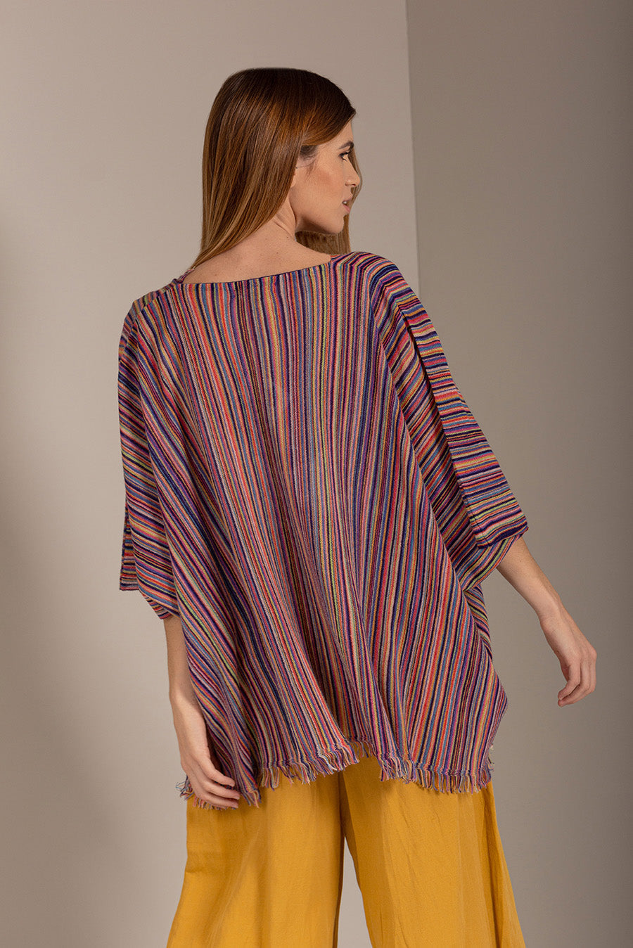 Un poncho que cae sobre el cuerpo y se adecua con facilidad. Siente la suavidad nuestro hilado compuesto por baby alpaca y seda, un tejido ligero, ideal para salidas de día | Material predominante: Baby Alpaca