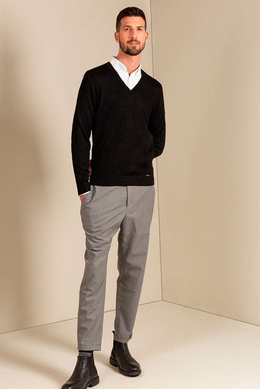 Clásico suéter de cuello en V. Confeccionado de baby alpaca, es una cómoda y acogedora opción para el día a día. | Material predominante: Baby Alpaca