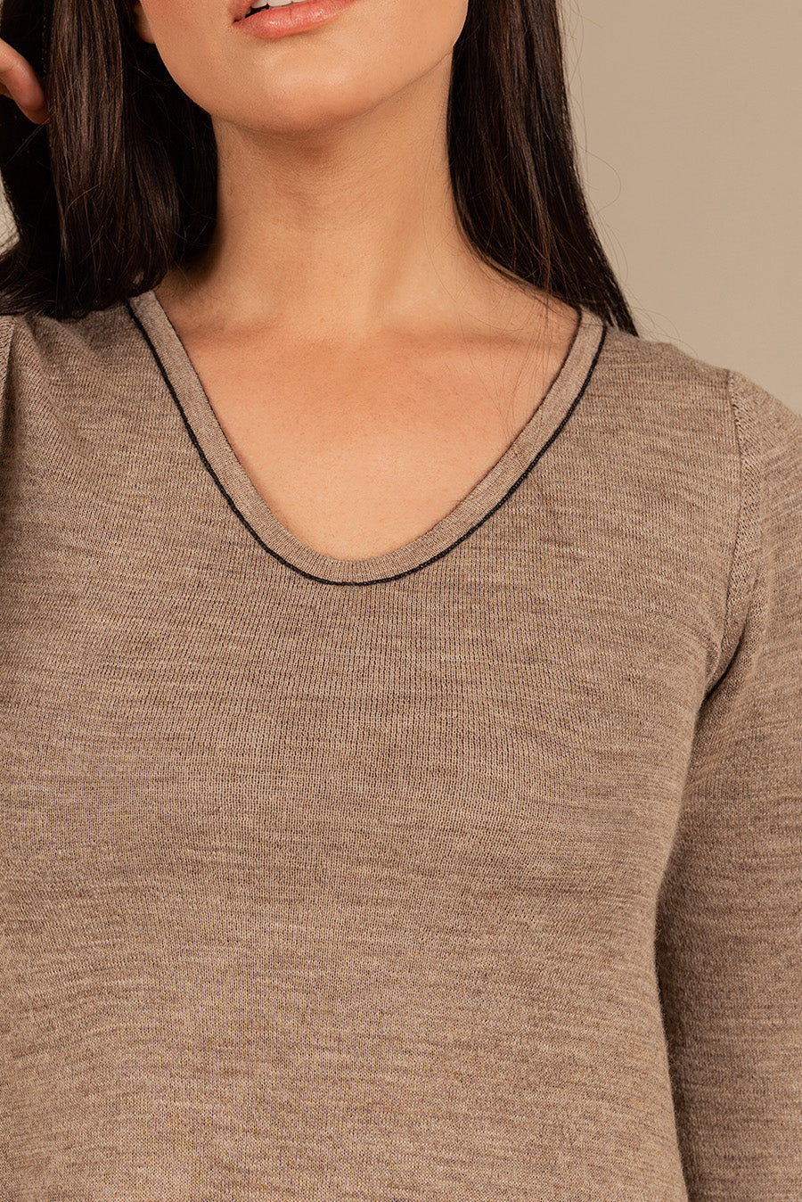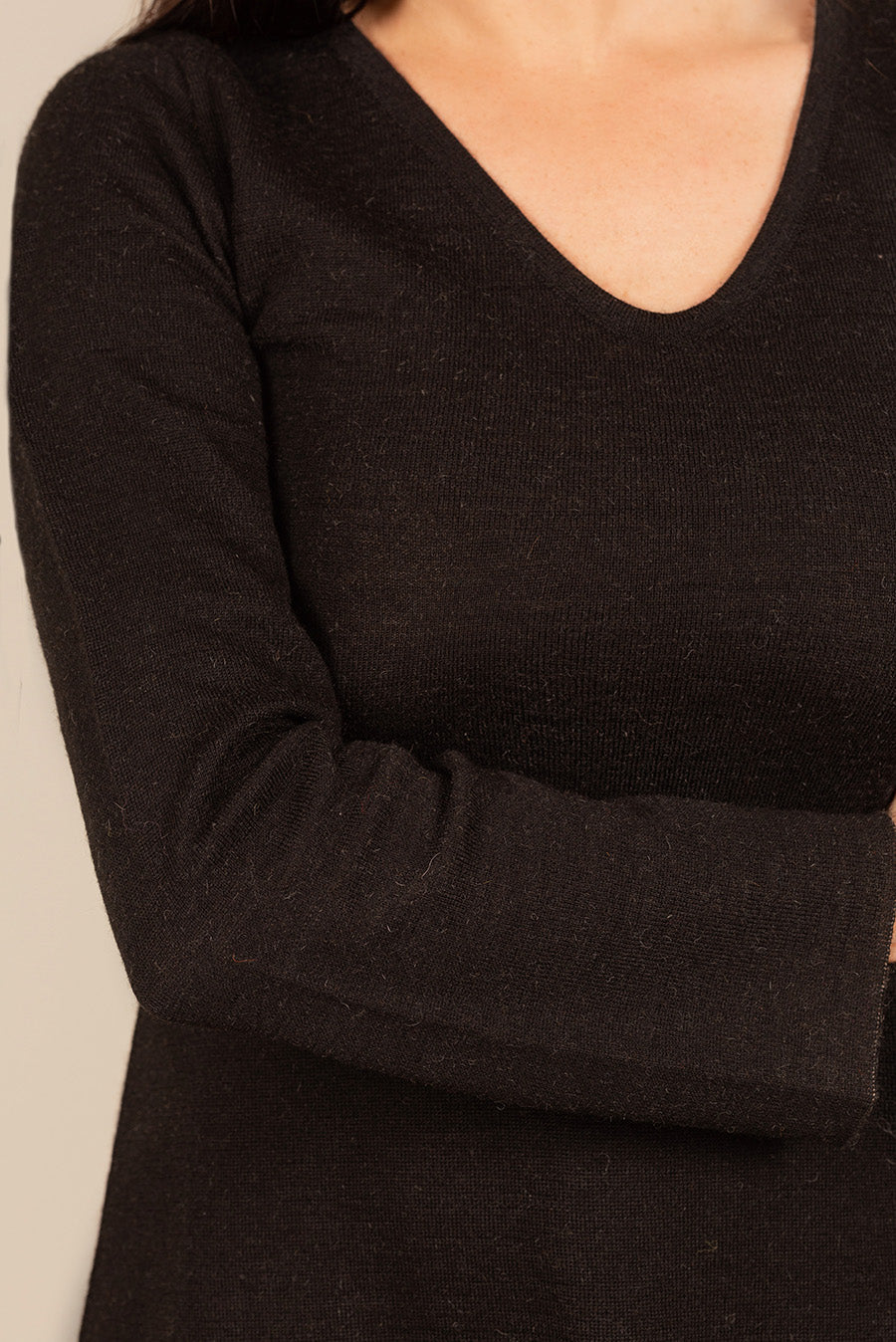 La silueta clásica y femenina define el estilo de este vestido reversible de baby alpaca. El delicado y ligero hilado, une las cualidades de ambos colores para ofrecerte un sinfín de posibilidades de uso. Además, la suavidad y adaptabilidad del tejido favorece el confort durante el uso. | Material predominante: Baby Alpaca