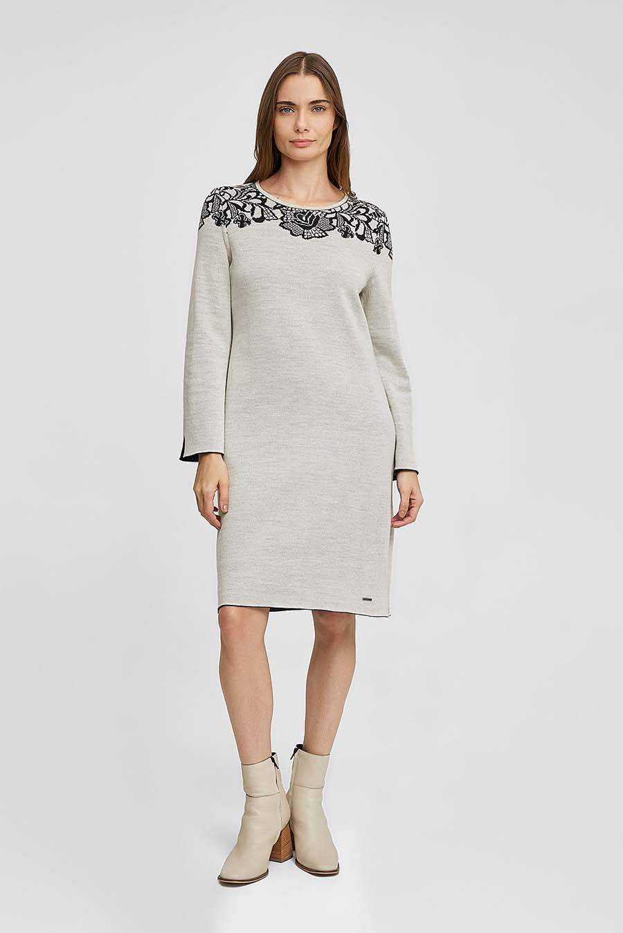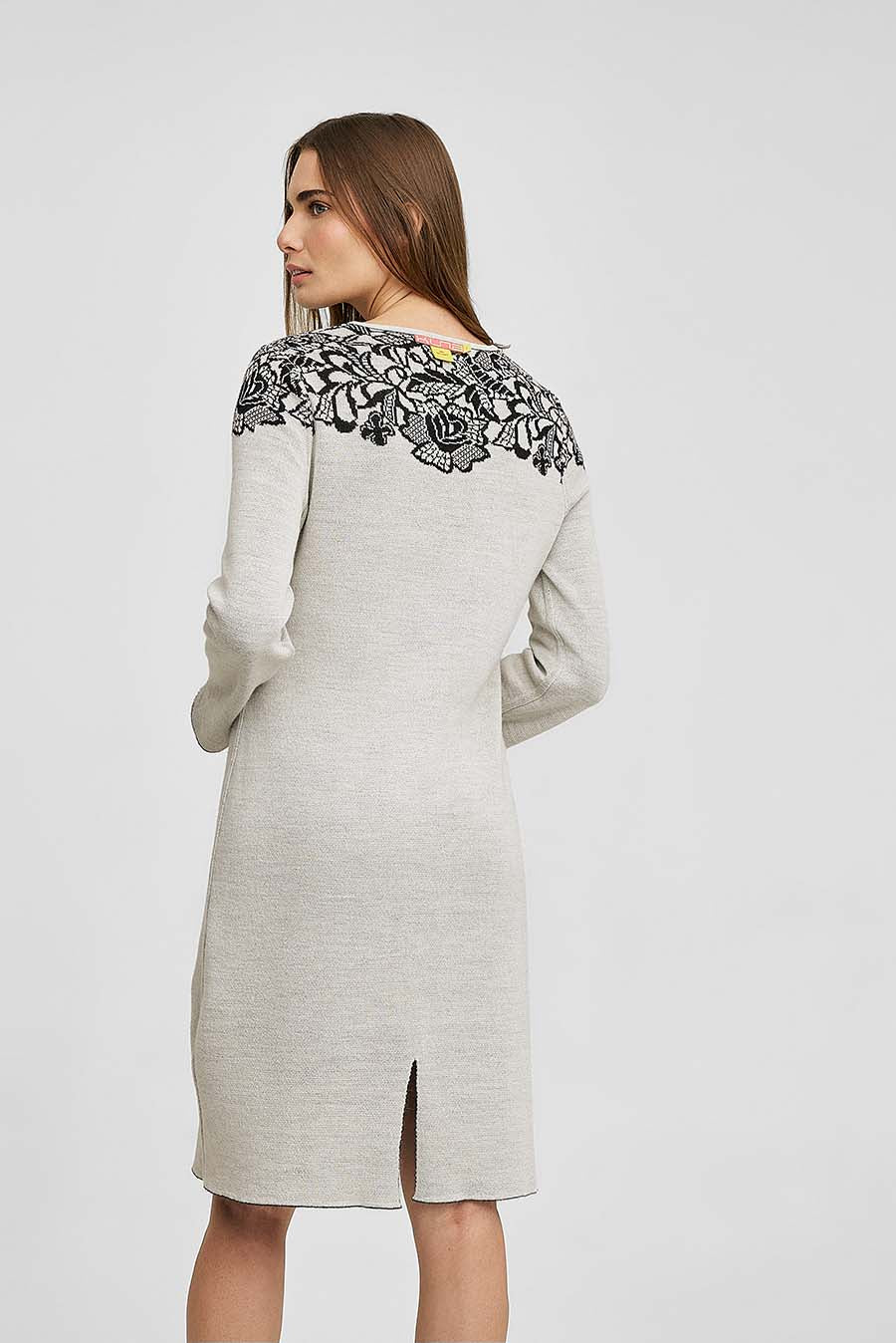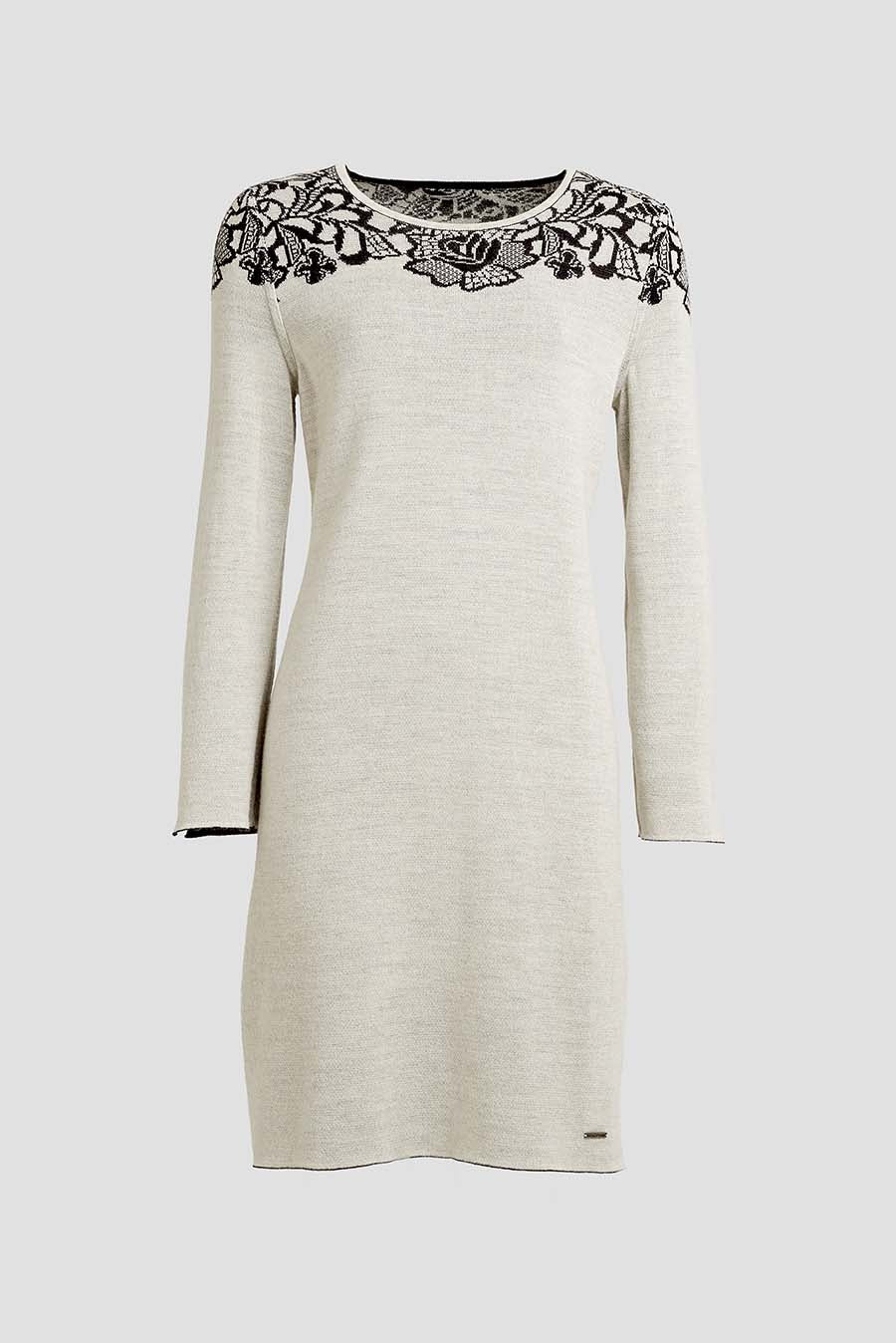 Este vestido reversible de manga larga es especialmente suave y cálido. De corte clásico con diseño en la parte superior, es una expresión de sencillez y confort. Un básico de invierno en colores neutros que abriga sin sofocar. | Material predominante: Baby Alpaca