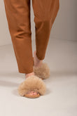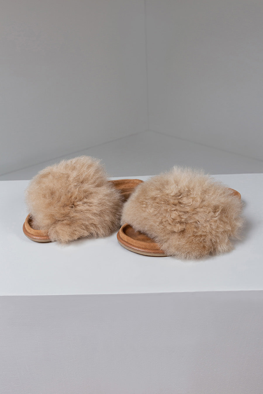 La elegante apariencia de la piel de alpaca huacaya realza el estilo esencial de nuestras nuevas sandalias Uerta. La banda está completamente cubierta por este suave y esponjoso pelo que da textura e ilumina el look con un toque lujoso. El forro de cuero y la planta de goma terminan de completar los detalles de este cómodo calzado. | Material predominante: Baby Alpaca