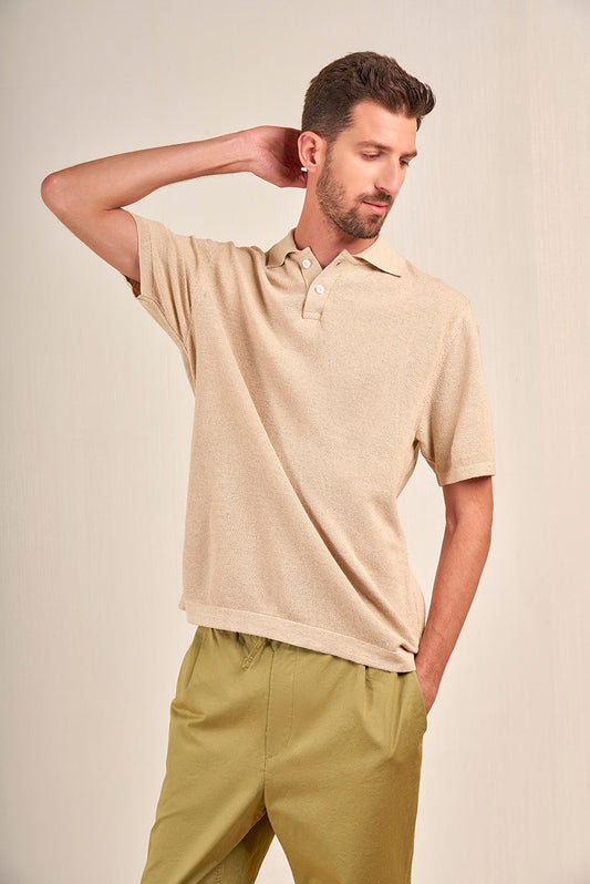 Clásico polo en algodón pima y lino. Prenda minimalista de manga corta, con cuello y...
