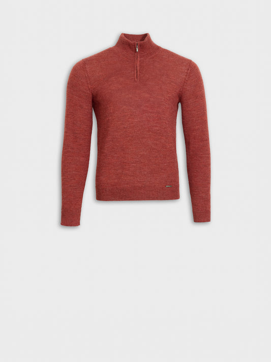 Suéter Albert en tonalidad rojo, con cuello alto y cremallera parcial. Confeccionado en baby alpaca,...
