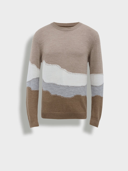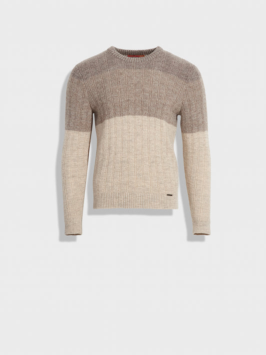 Suéter Zion en tonalidad beige, con diseño de cuello redondo y punto de dos colores...