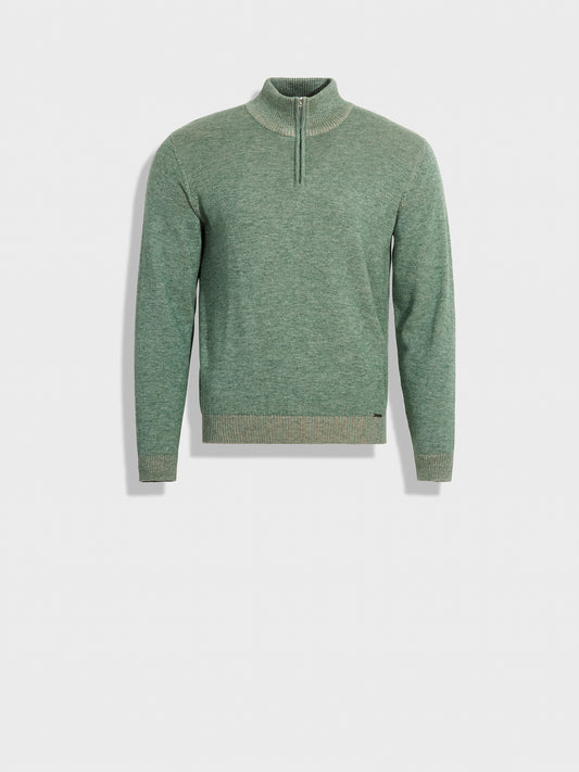 Suéter Zola en tonalidad verde, con cuello alto y cremallera parcial. Presenta puños de punto...