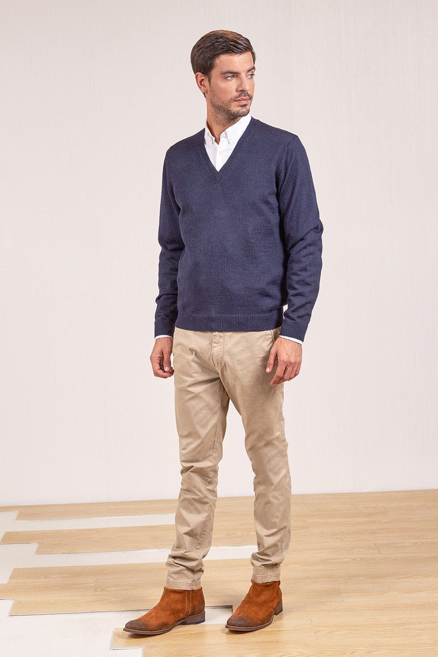 Clásico suéter de cuello en V. Confeccionado de baby alpaca, es una cómoda y acogedora opción para el día a día. | Material predominante: Baby Alpaca