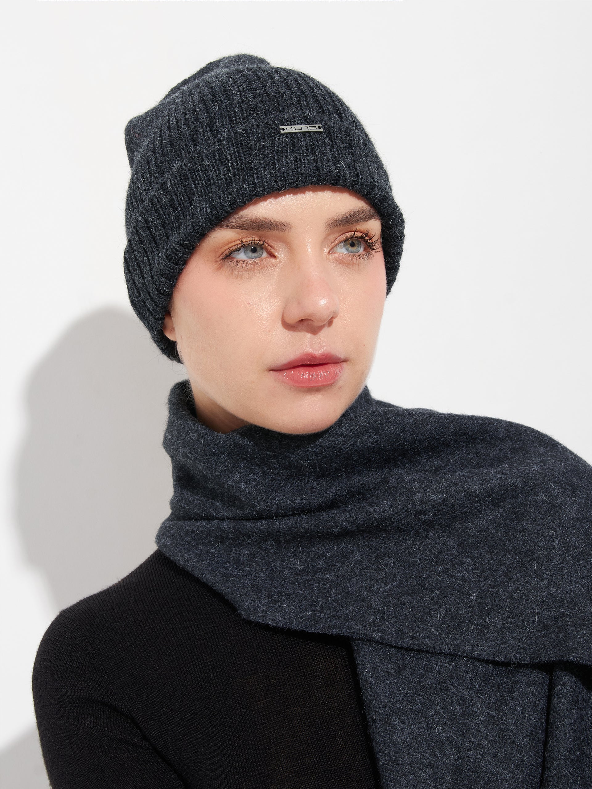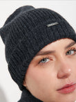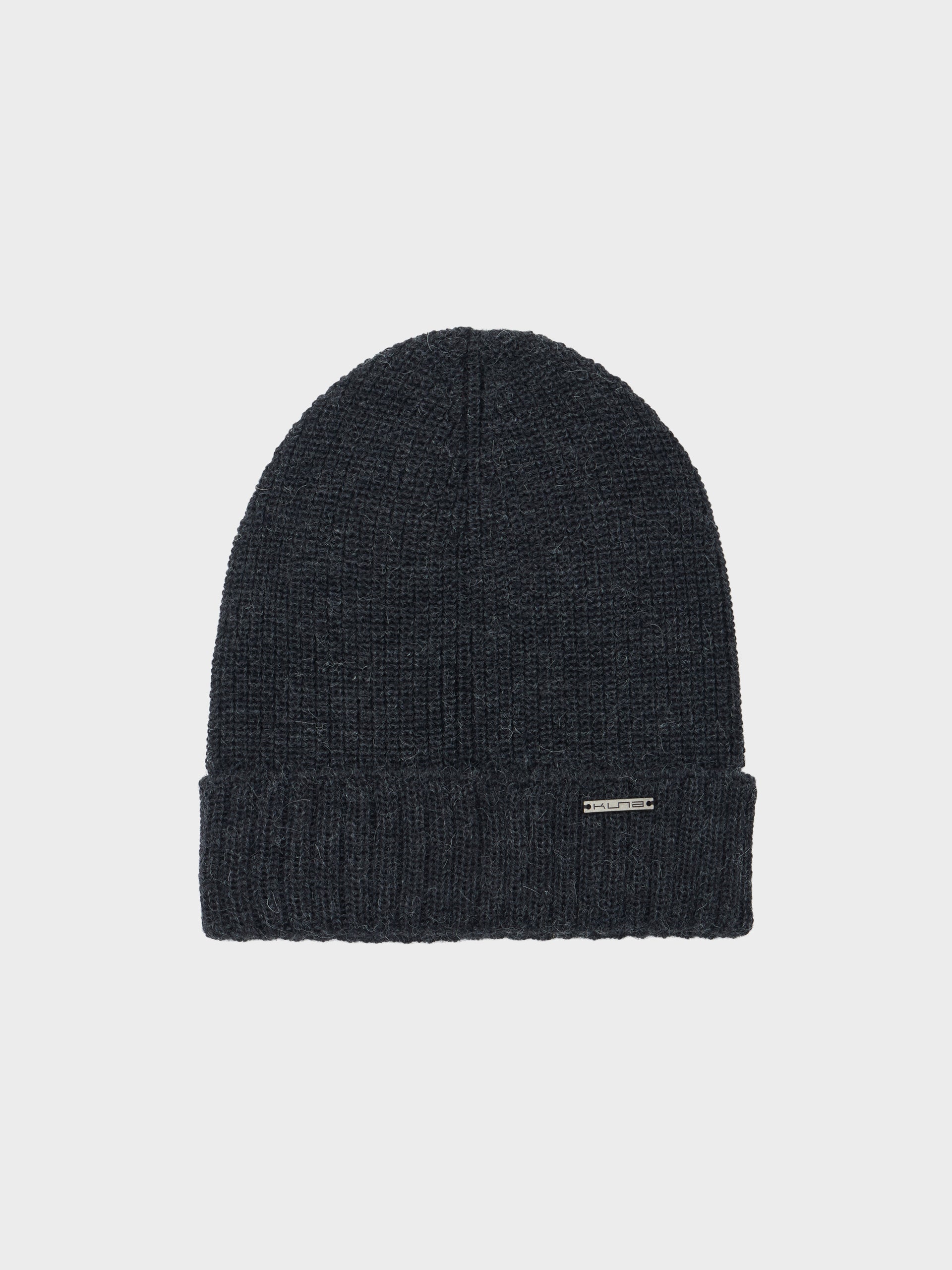 Gorro Apostrofe en tonalidad gris, confeccionado en 100% baby alpaca. Este accesorio de punto destaca por su ajuste ceñido y pretina doblada, ofreciendo un diseño minimalista de color entero. | Material predominante: Baby Alpaca