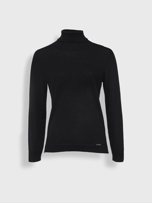 Suéter Zero en tonalidad azul, con cuello alto tipo tortuga con aberturas en los puños....