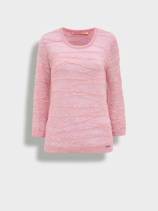 Suéter Zample en tonalidad rosada, confeccionado en una mezcla de baby alpaca y seda. Presenta...