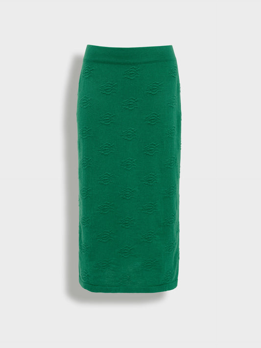 Falda Zabeth en tonalidad verde, confeccionada con algodón orgánico y baby alpaca. Es una falda...