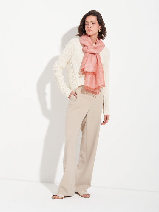 Estola Zanone en tonalidad rojo, confeccionada en baby alpaca y seda. Presenta un delicado estampado...