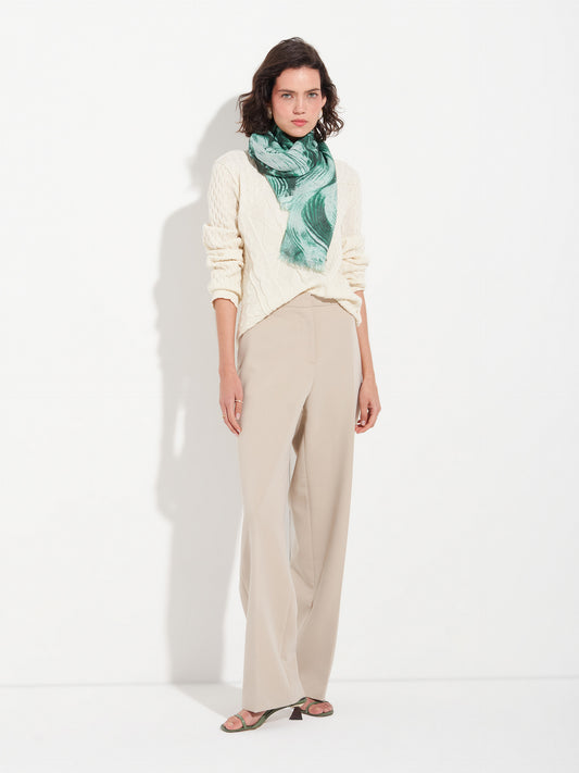 Estola Zanone en tonalidad verde, confeccionada en baby alpaca y seda. Presenta un delicado estampado...