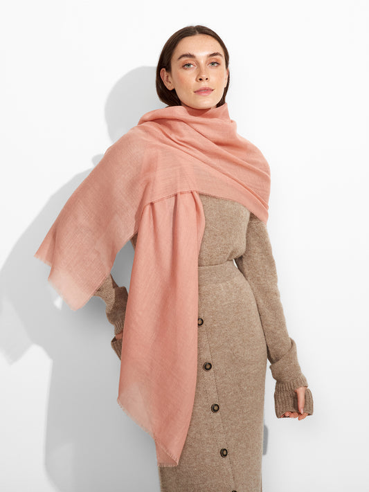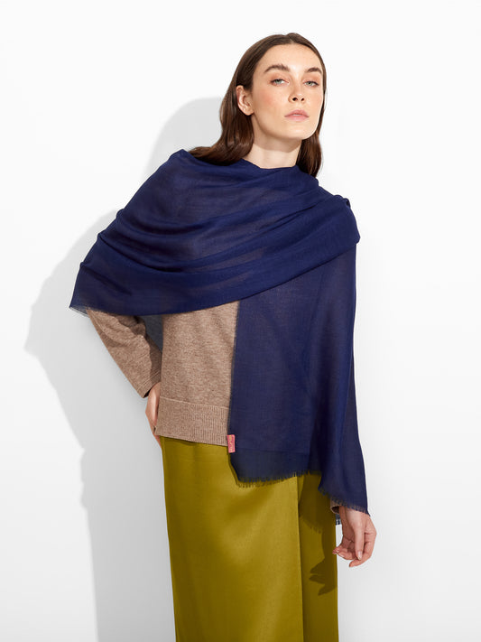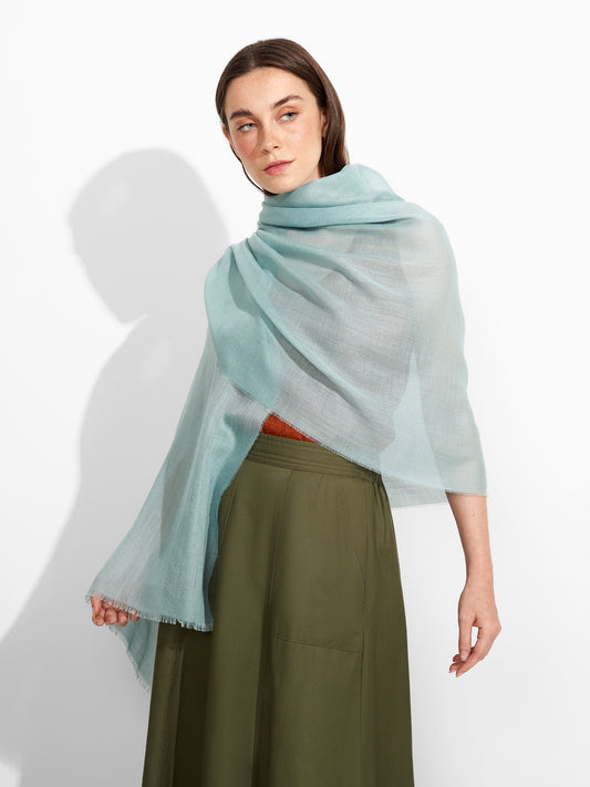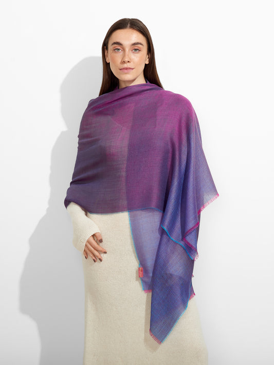 This colourful shawl with gradient effect is so light you will not stop wearing it.