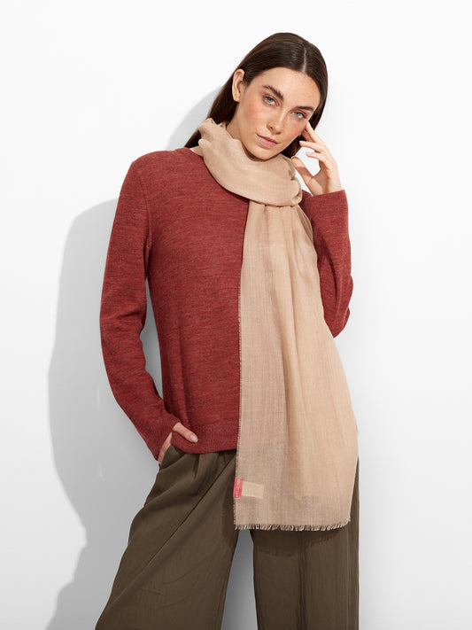 La exquisita chalina Yanapi de baby alpaca y seda, en tonos naturales, añade un toque...