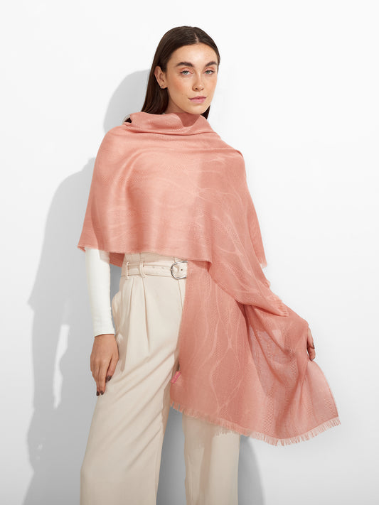 Estola Zuniga en tonalidad rosado, de color entero y diseño de líneas onduladas que recorren...