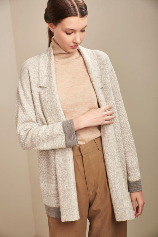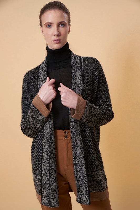 Our jacquard Uforia cardigan is made of 100% baby alpaca. It is soft and warm,...