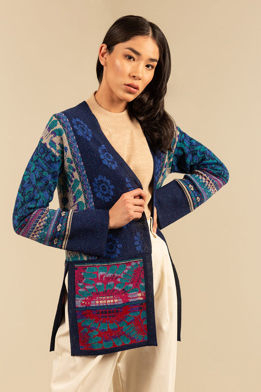 The rich texture, beautiful colours and flattering silhouette of our Ucrania cardigan make it a...