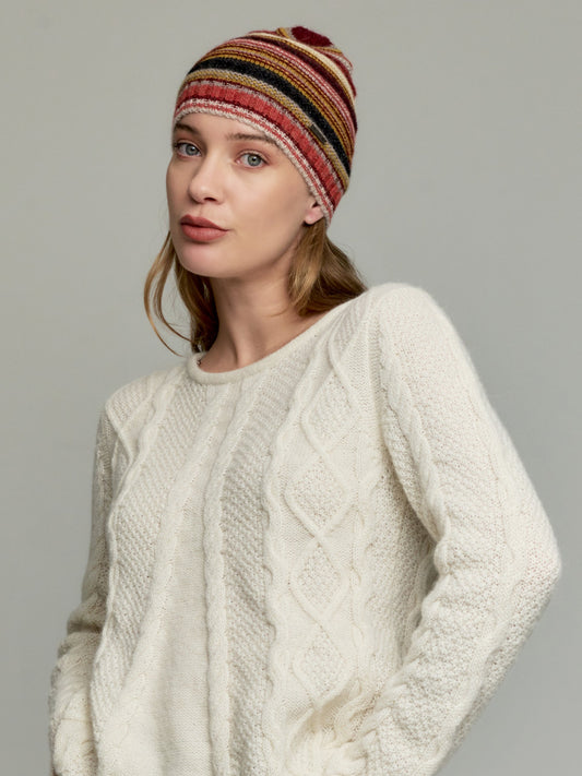 A set of colors come together in our Windsor hat, made entirely from baby alpaca.