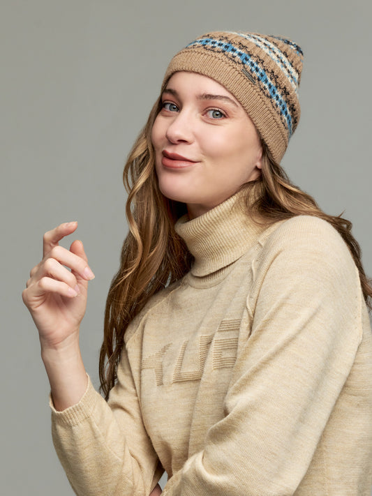 Our cozy Wonder hat is made from 100% baby alpaca. Its shades make it easily...