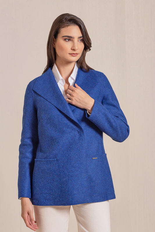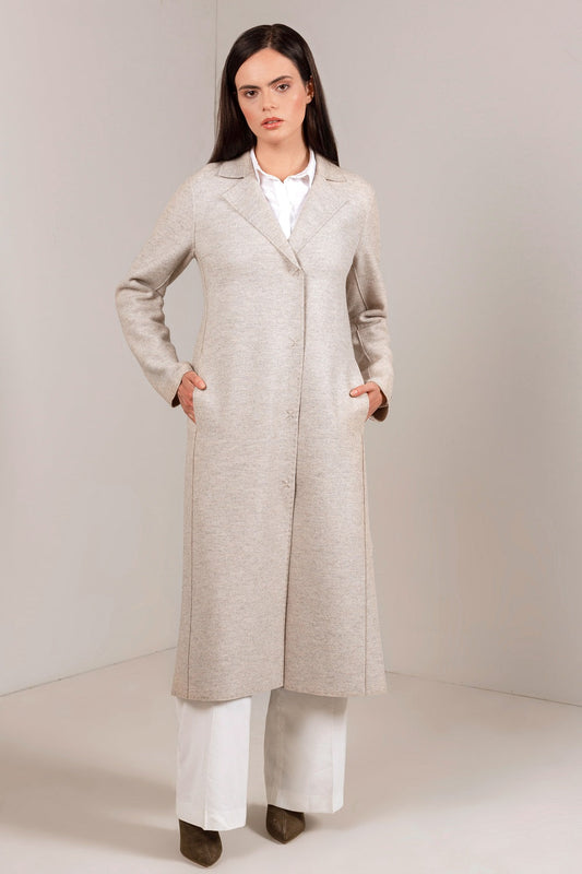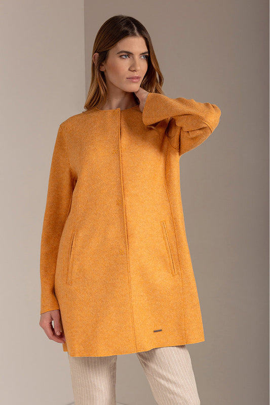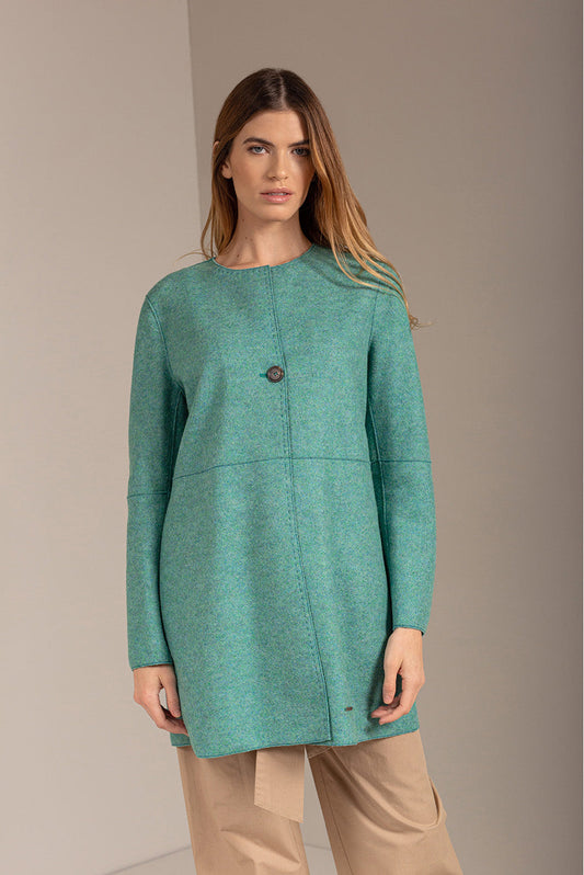 A timeless coat with round neck, a must have in your closet. The felted fabric,...