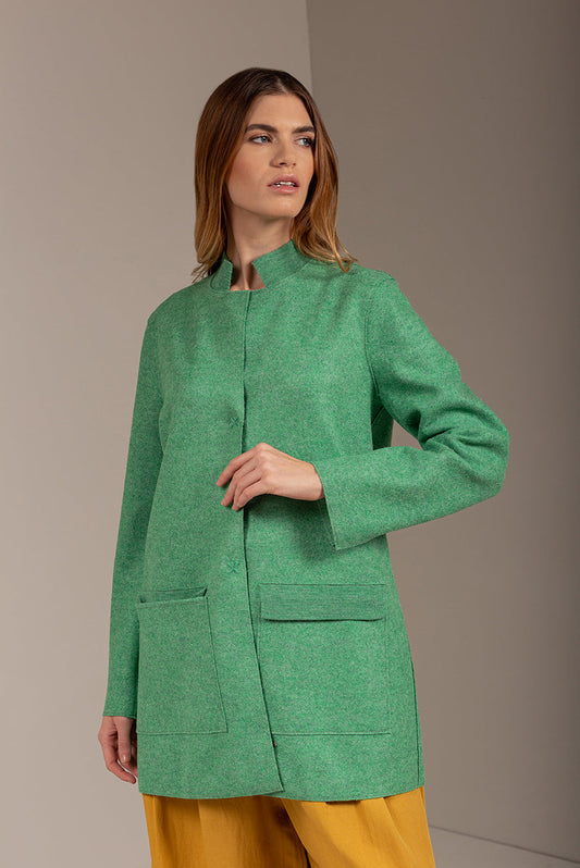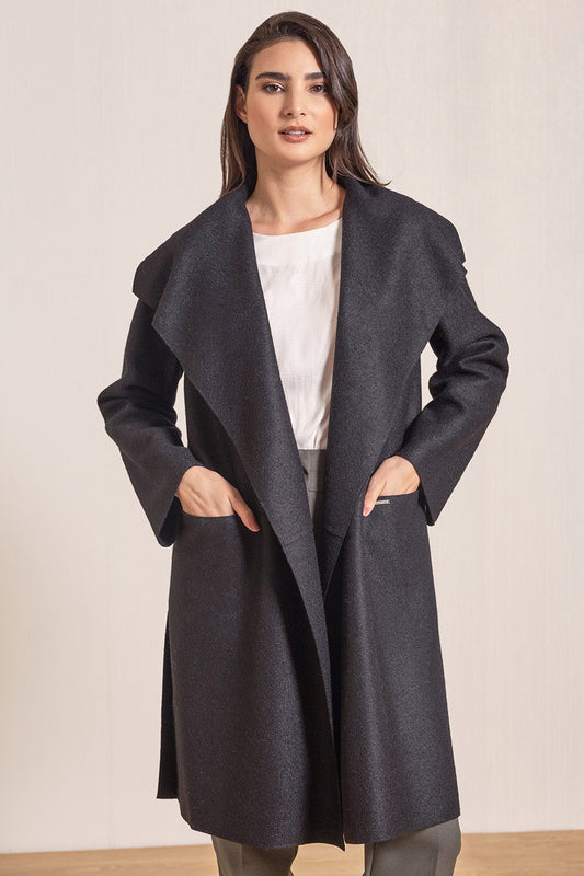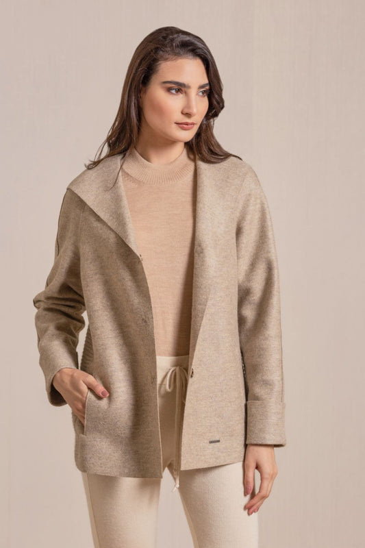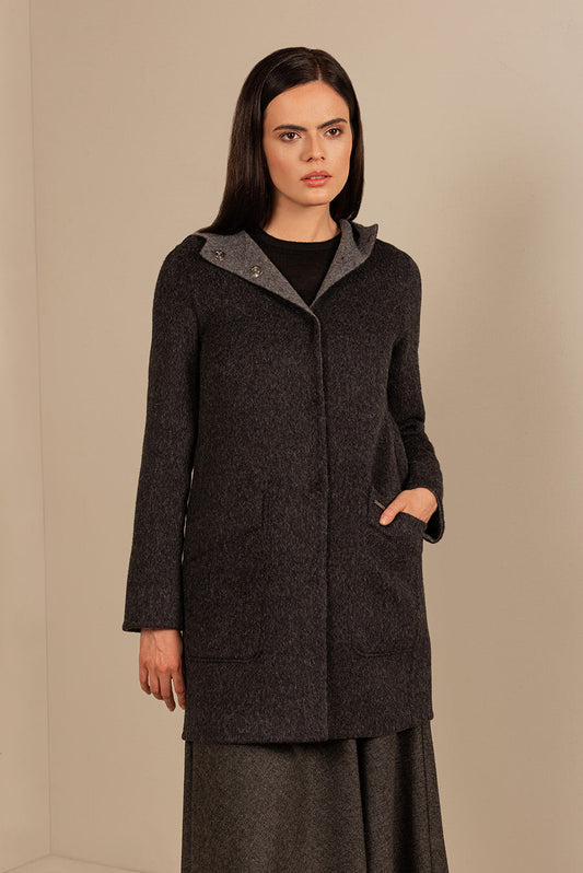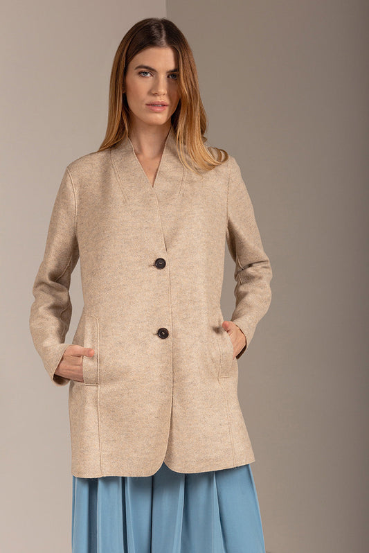 Our Vaderetro coat is made of a luxurious felted fabric that combines alpaca and wool...