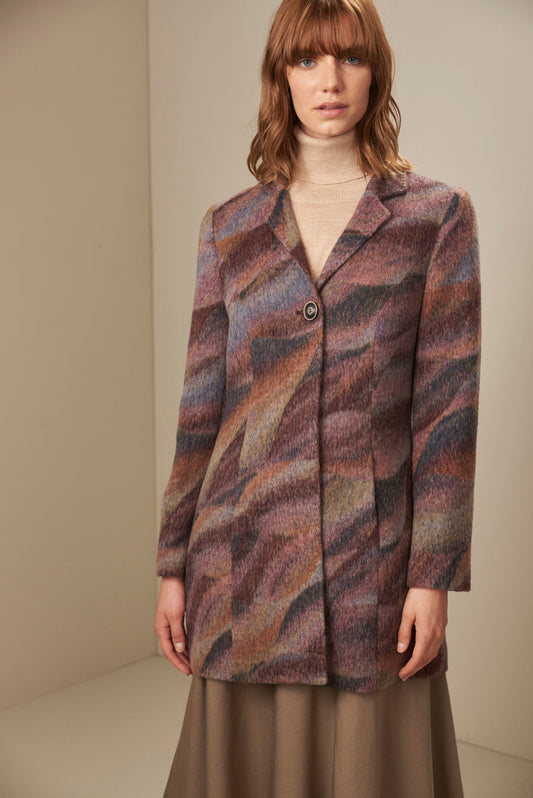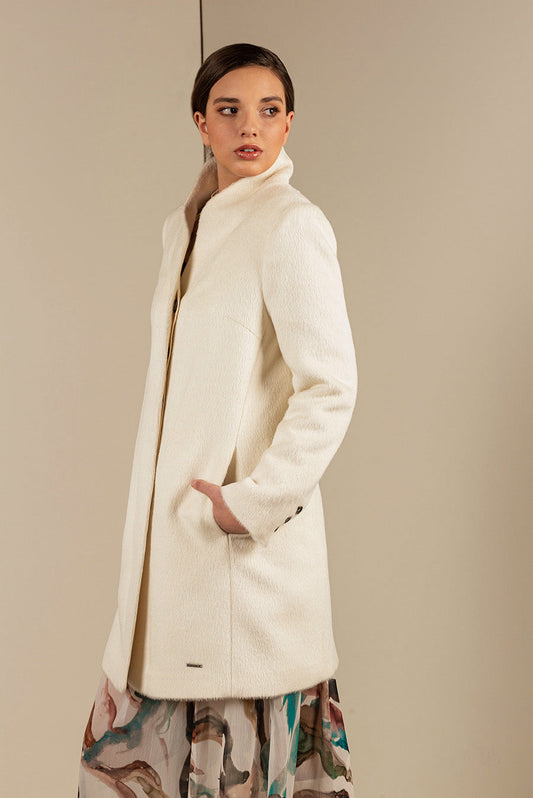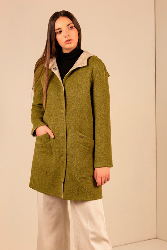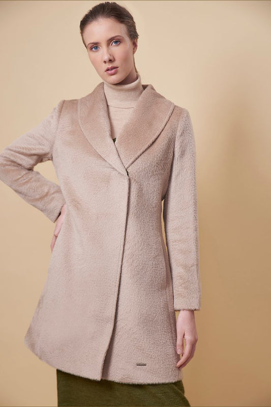 A cheerful antidote for the winter, made with 100% baby alpaca fabric, the Utte coat...