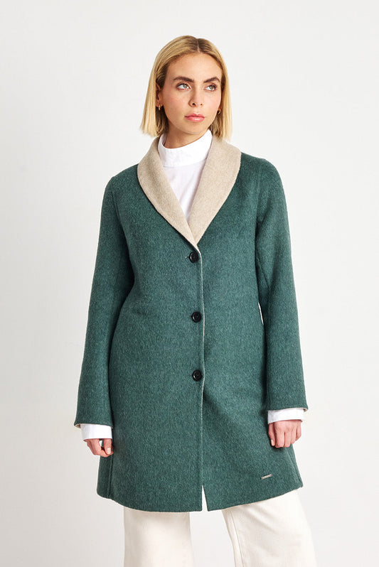 A beautiful reversible garment, our Vanucci coat features a wide collar flawlessly balanced with the...