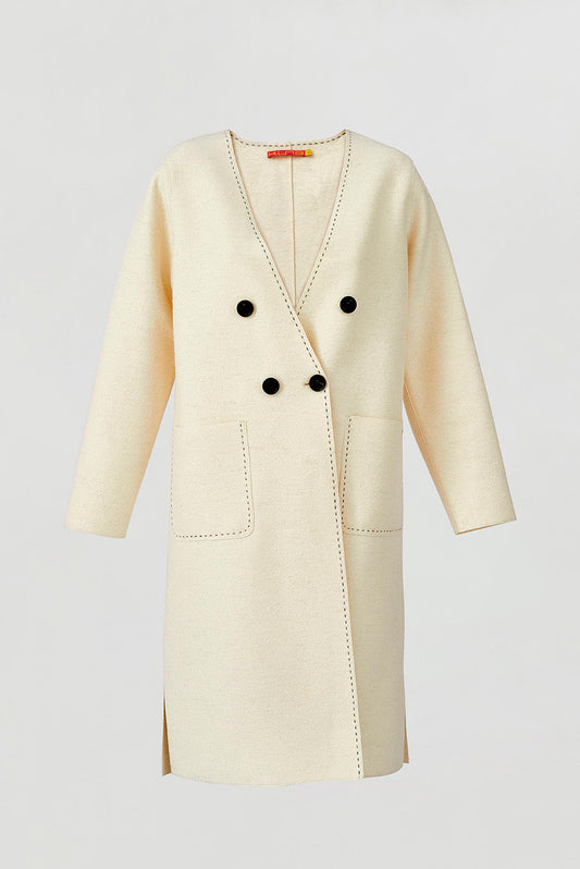 Made of felted fabric, our Vegas coat is embellished with knitted details on the neck...