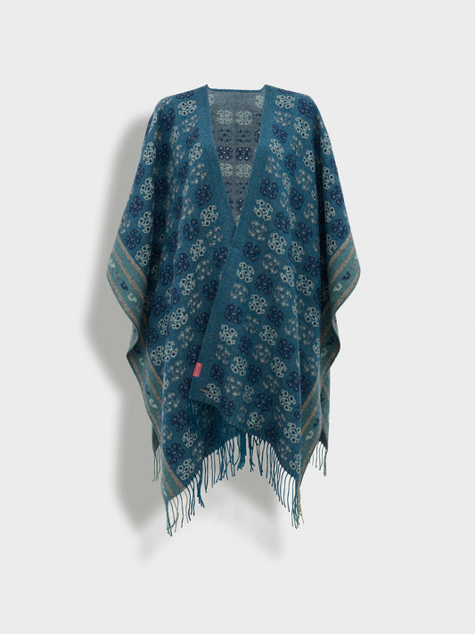 Poncho Chancay 35 en tonalidad azul, elaborado en 100% baby alpaca con técnica Jacquard en...