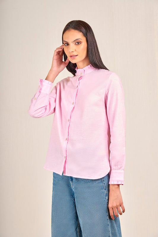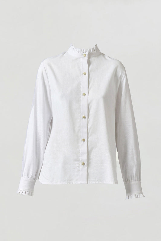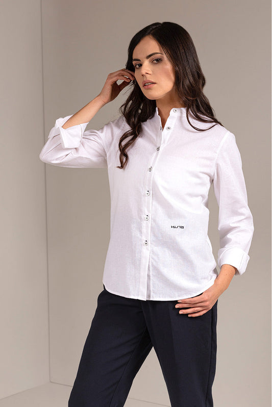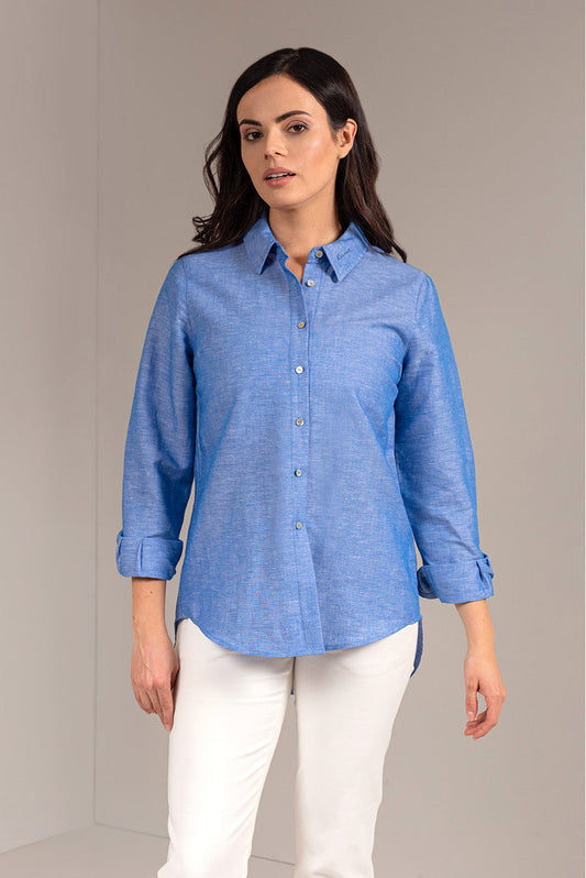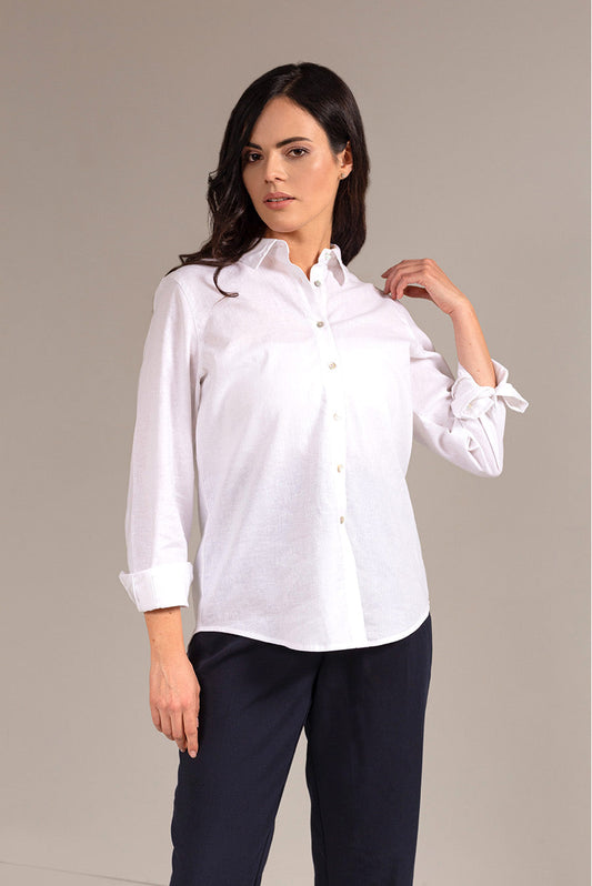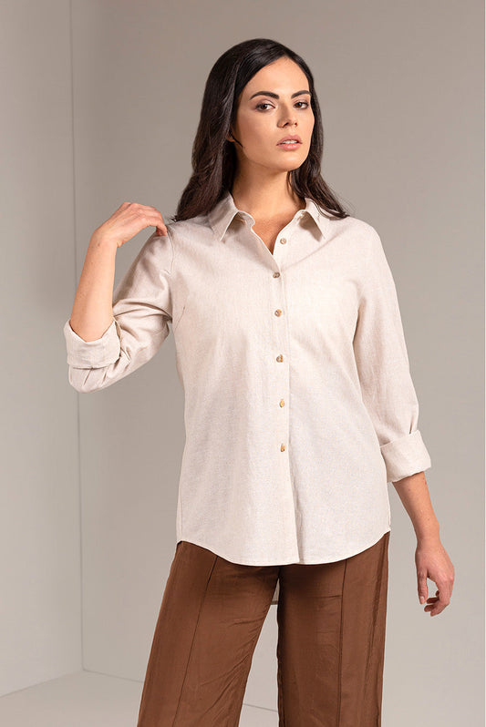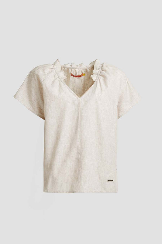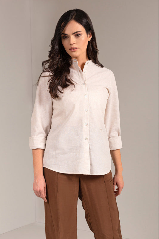 Our Unbeso linen blouse features a delicate detail on the collar and a pretty yoke...