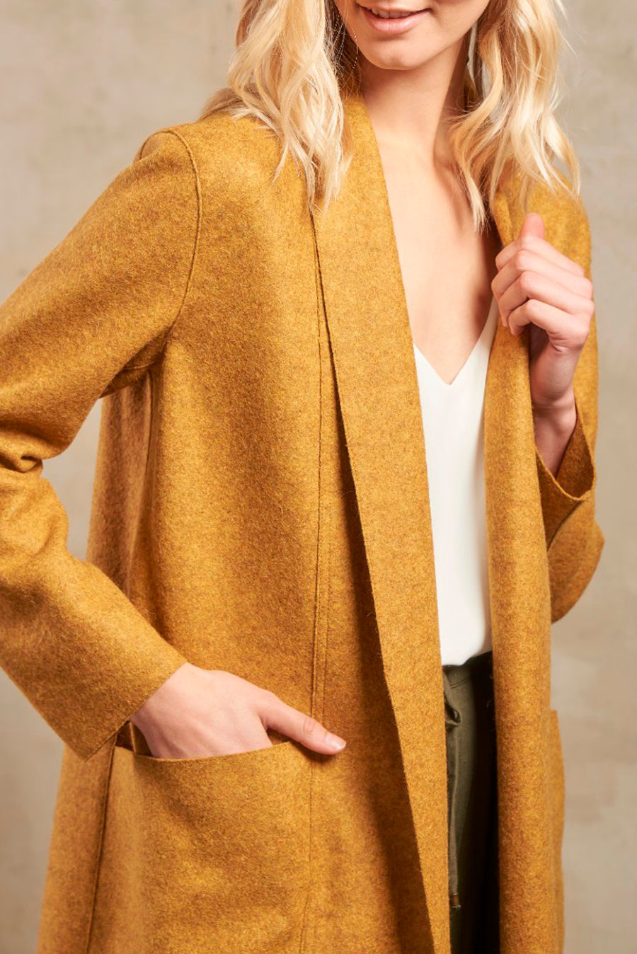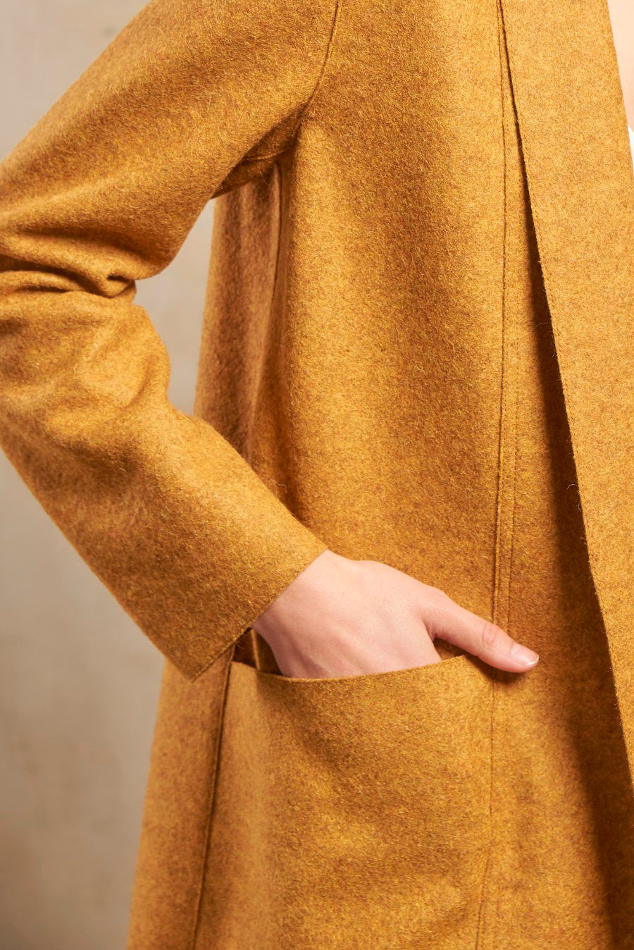Our Scala coat with a casual design is made of 60% alpaca and 40% wool. Available in four bright colours.