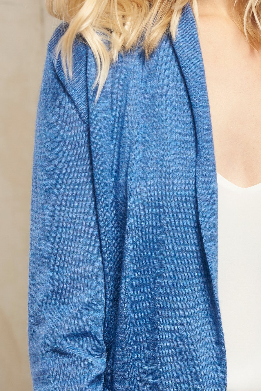 Our light Salma cardigan is made of 70% baby alpaca and 30% silk.