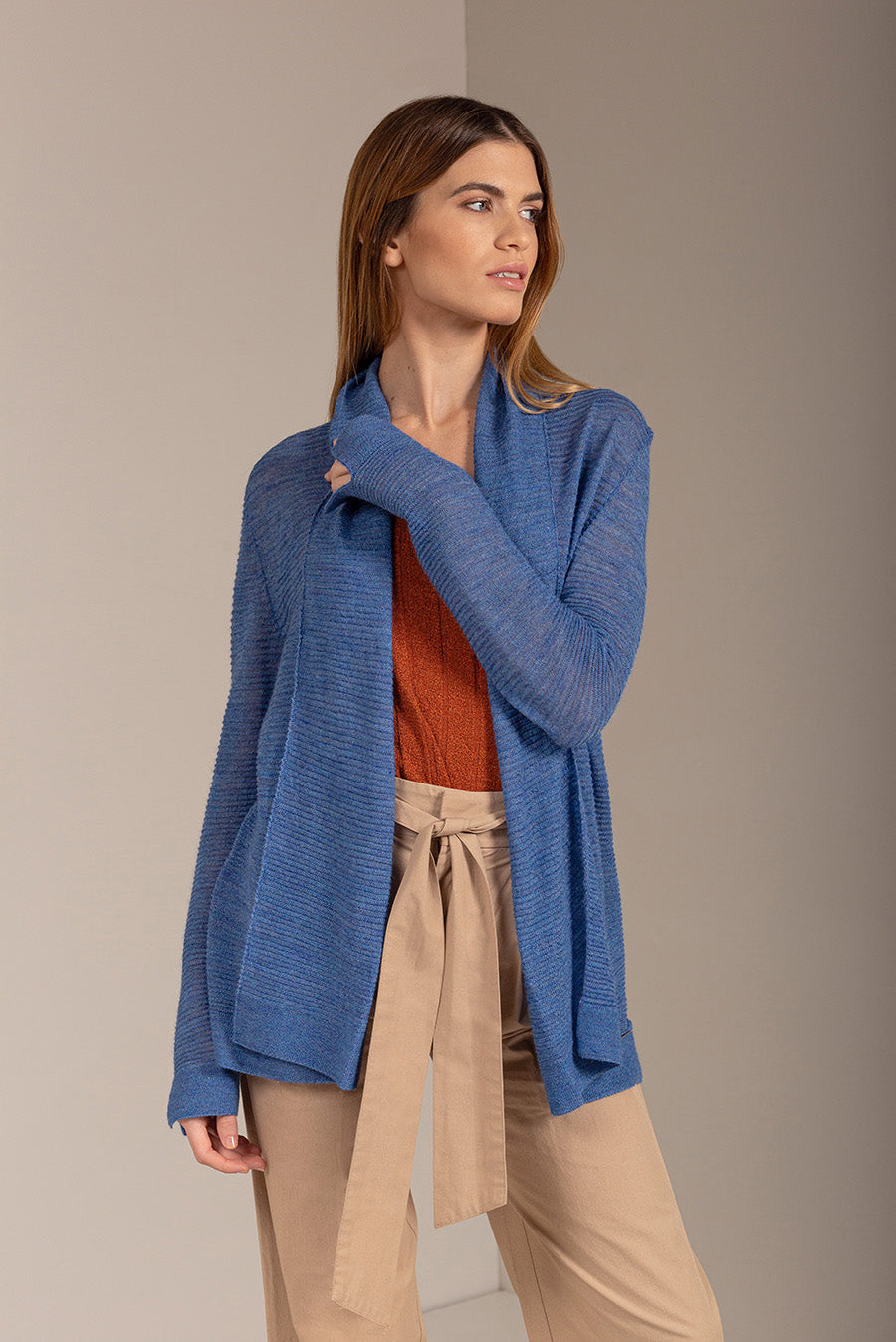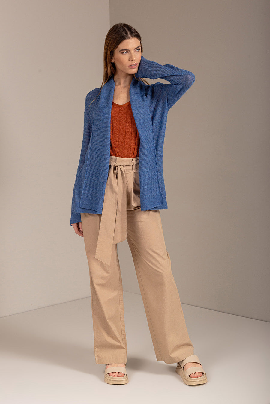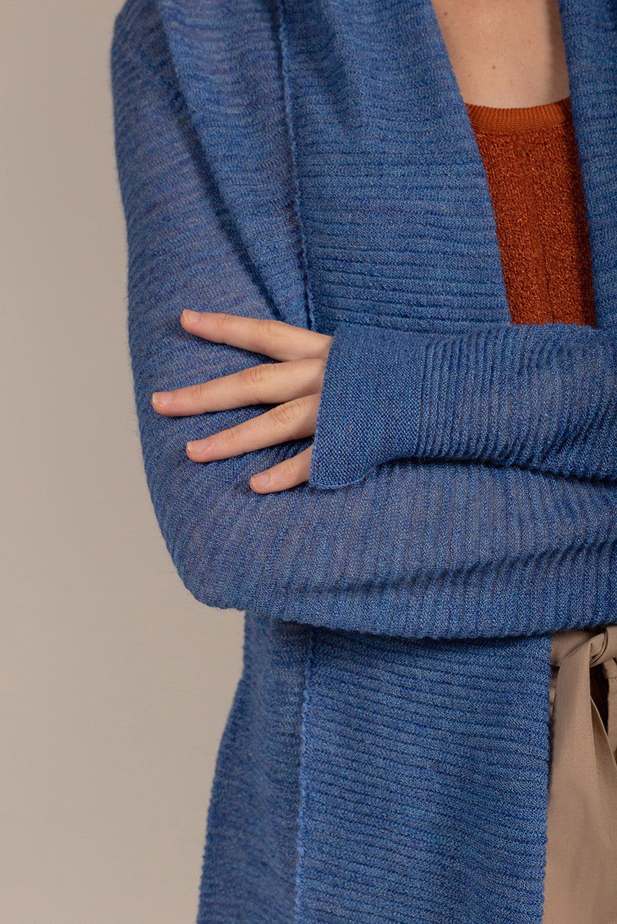The delicate texture of the fabric ennobles the style of our light and cosy Salvia cardigan, made of baby alpaca and silk. The easy fit and soft texture will make it your favourite piece any time