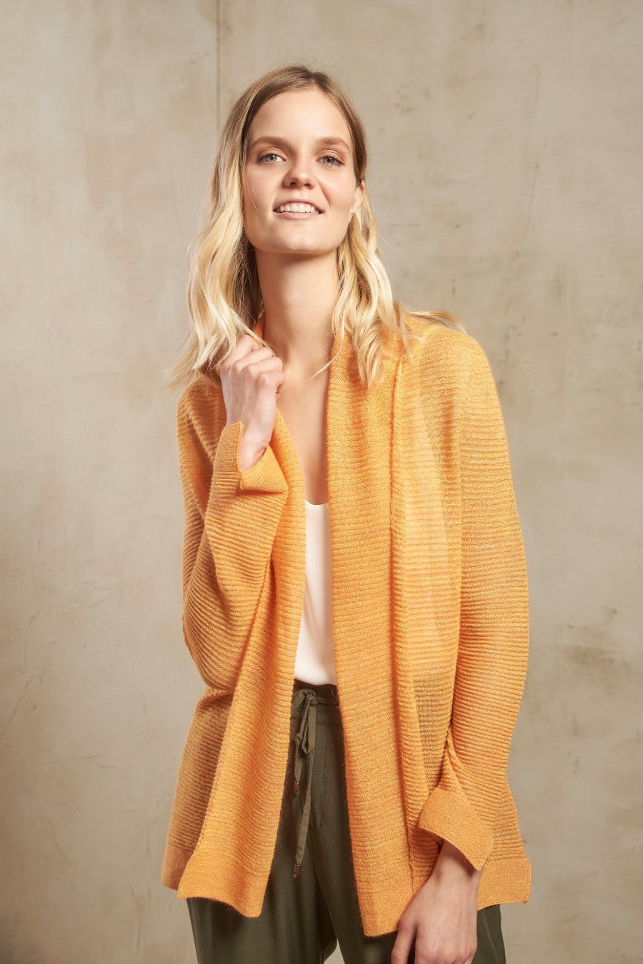 The delicate texture of the fabric ennobles the style of our light and cosy Salvia cardigan, made of baby alpaca and silk. The easy fit and soft texture will make it your favourite piece any time