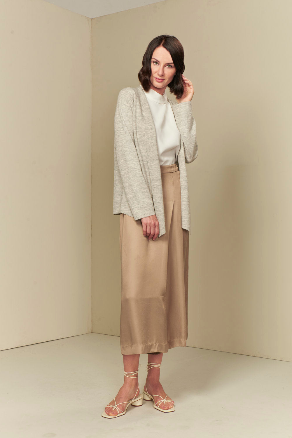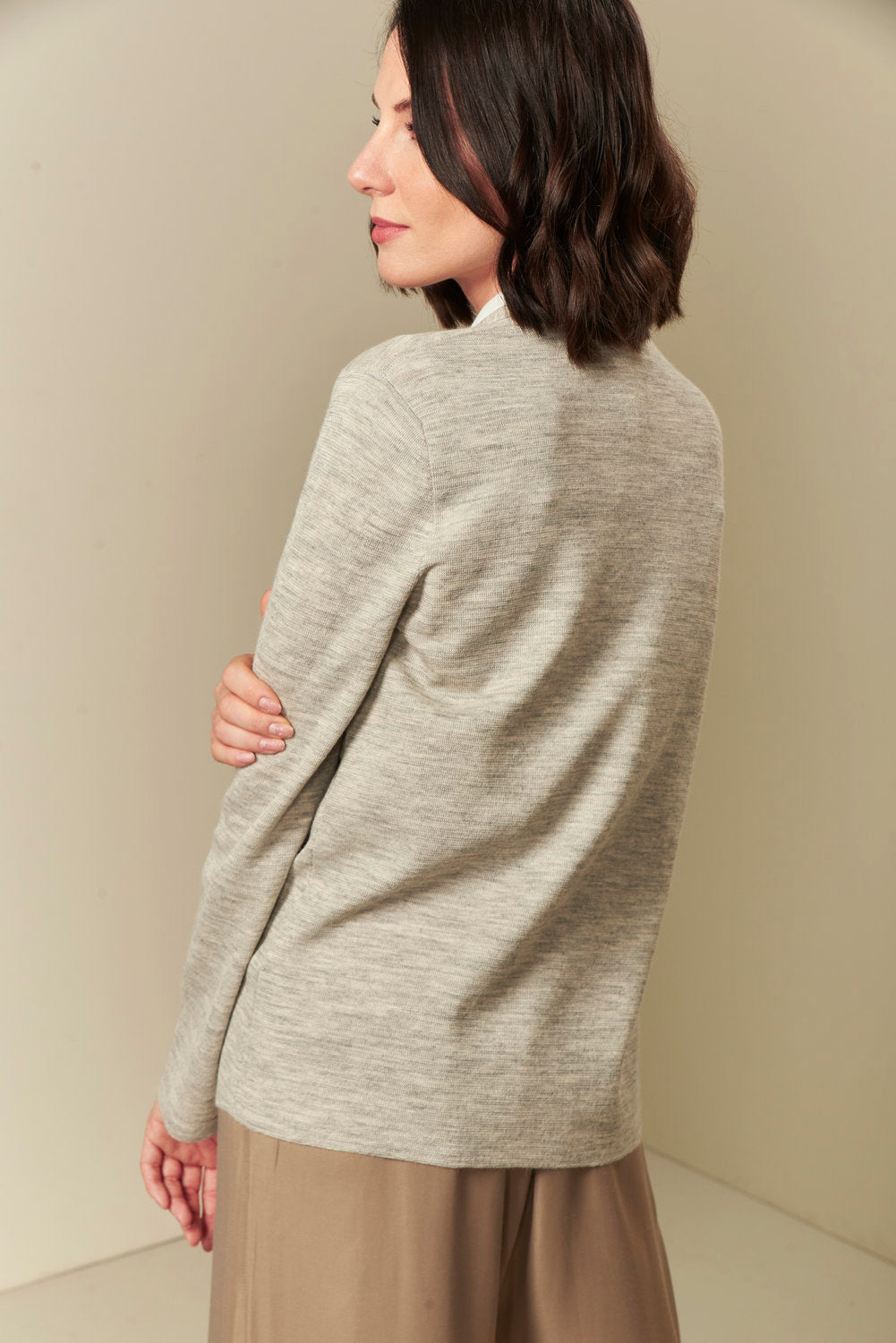 With an elegant drape and a subtle shine, Taiga is the cardigan that allows you to build a very feminine look. Made with baby alpaca and silk fibers.