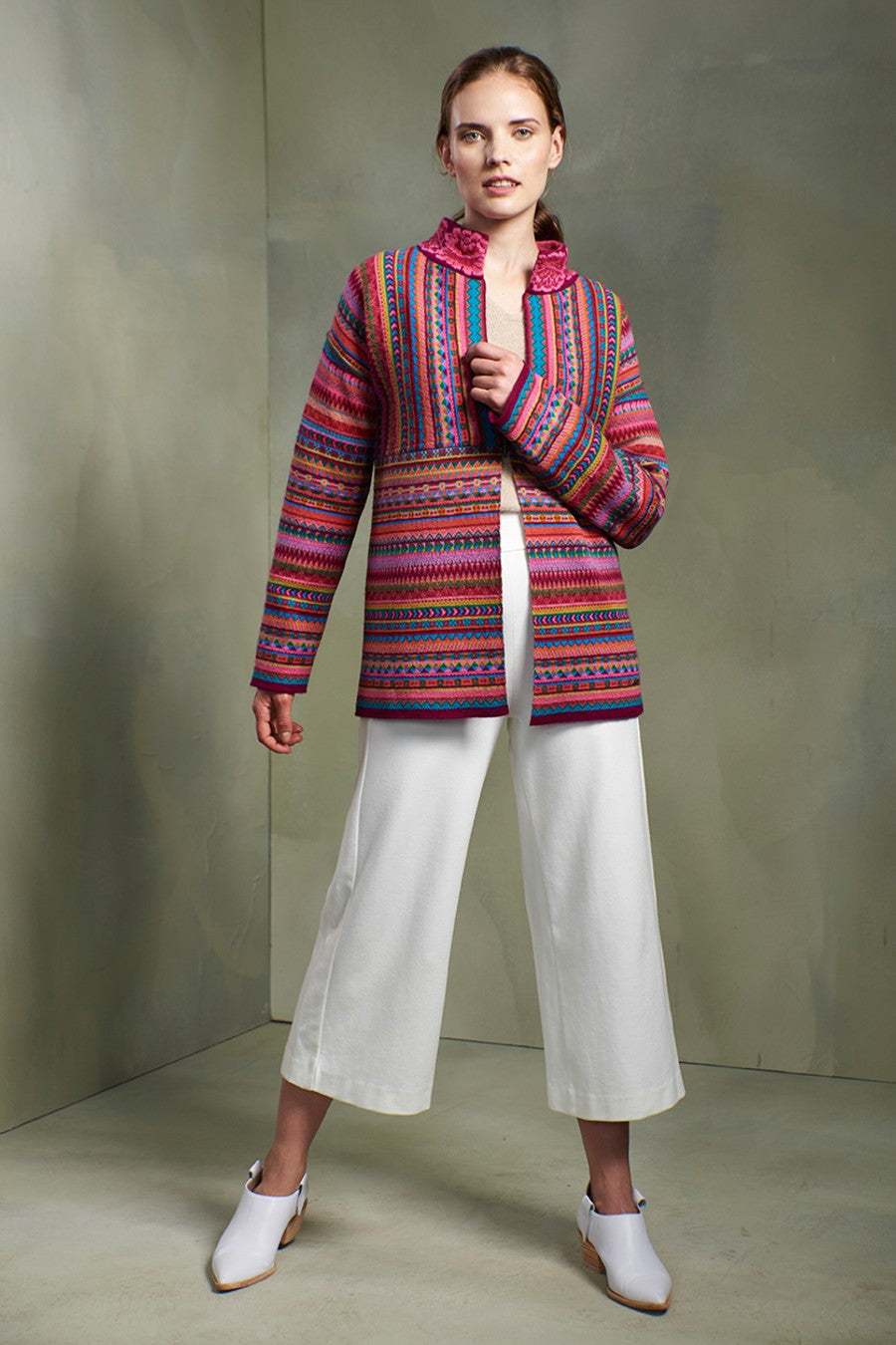 This garment, the Tuyo, is inspired by traditional, ethnical lines and patterns and makes your outfit not only original and unique, but also singularly colourful.