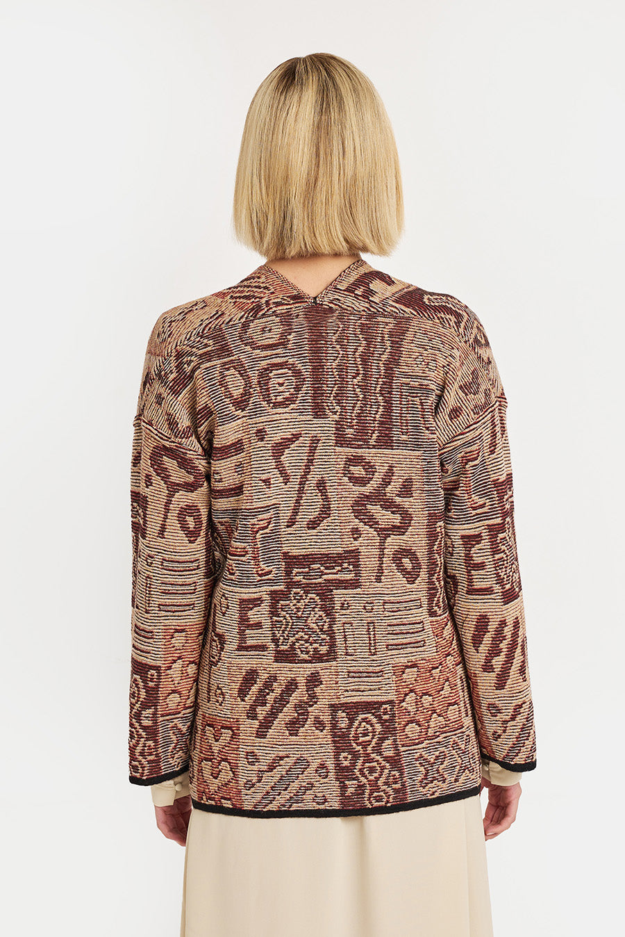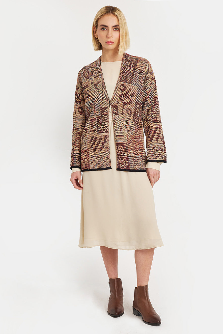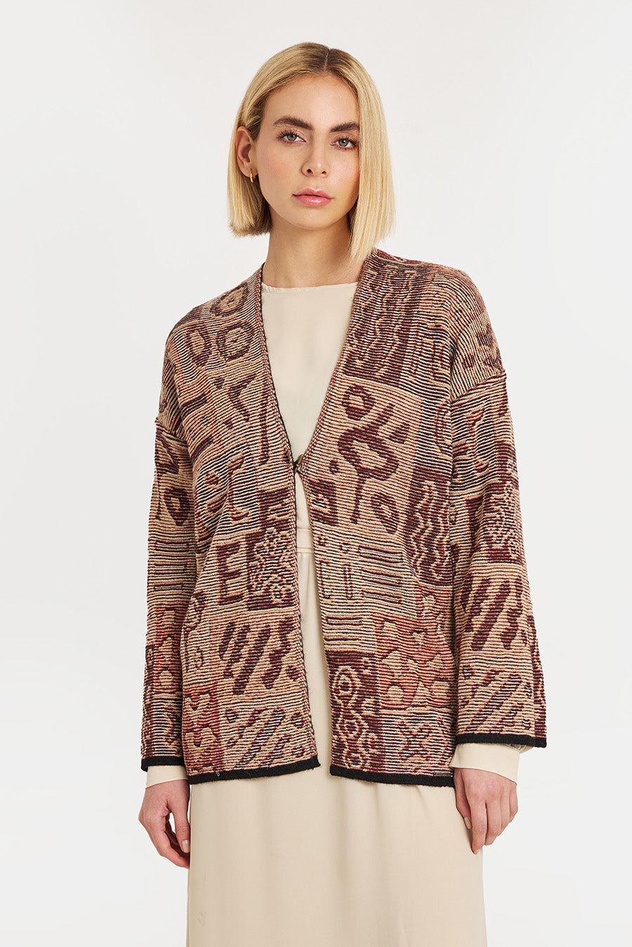 Our reversible Winika cardigan is one of the most representative pieces of this collection. Inspired by Afro Peruvian shapes and colours, this unique piece will make you stand out.