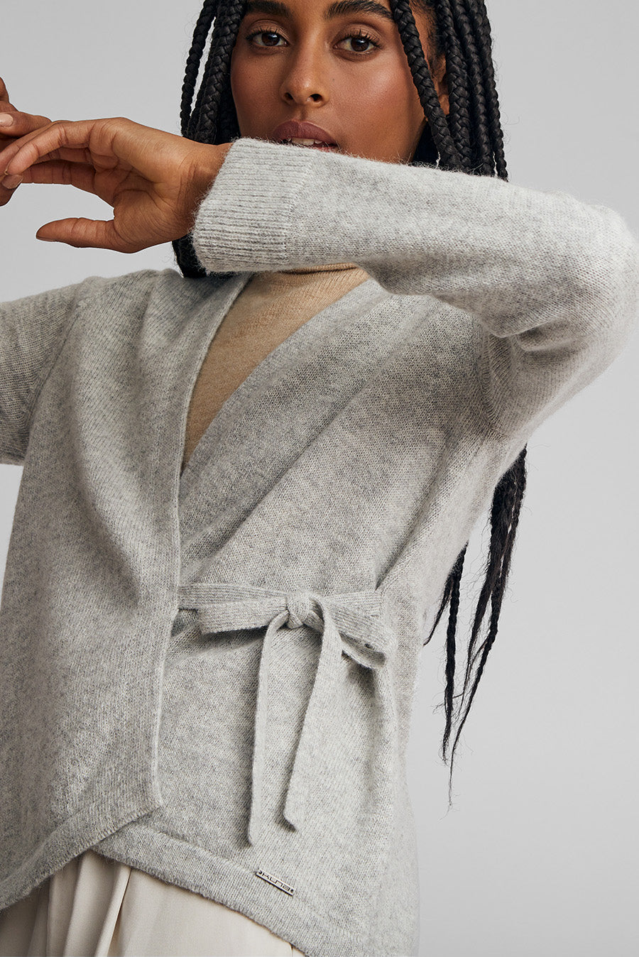 Our Weekend cardigan is available in 3 colors that are perfect for your winter looks. Made of 100% baby alpaca, with its crossover design you will not go unnoticed with this special garment. | Predominant material: Baby Alpaca