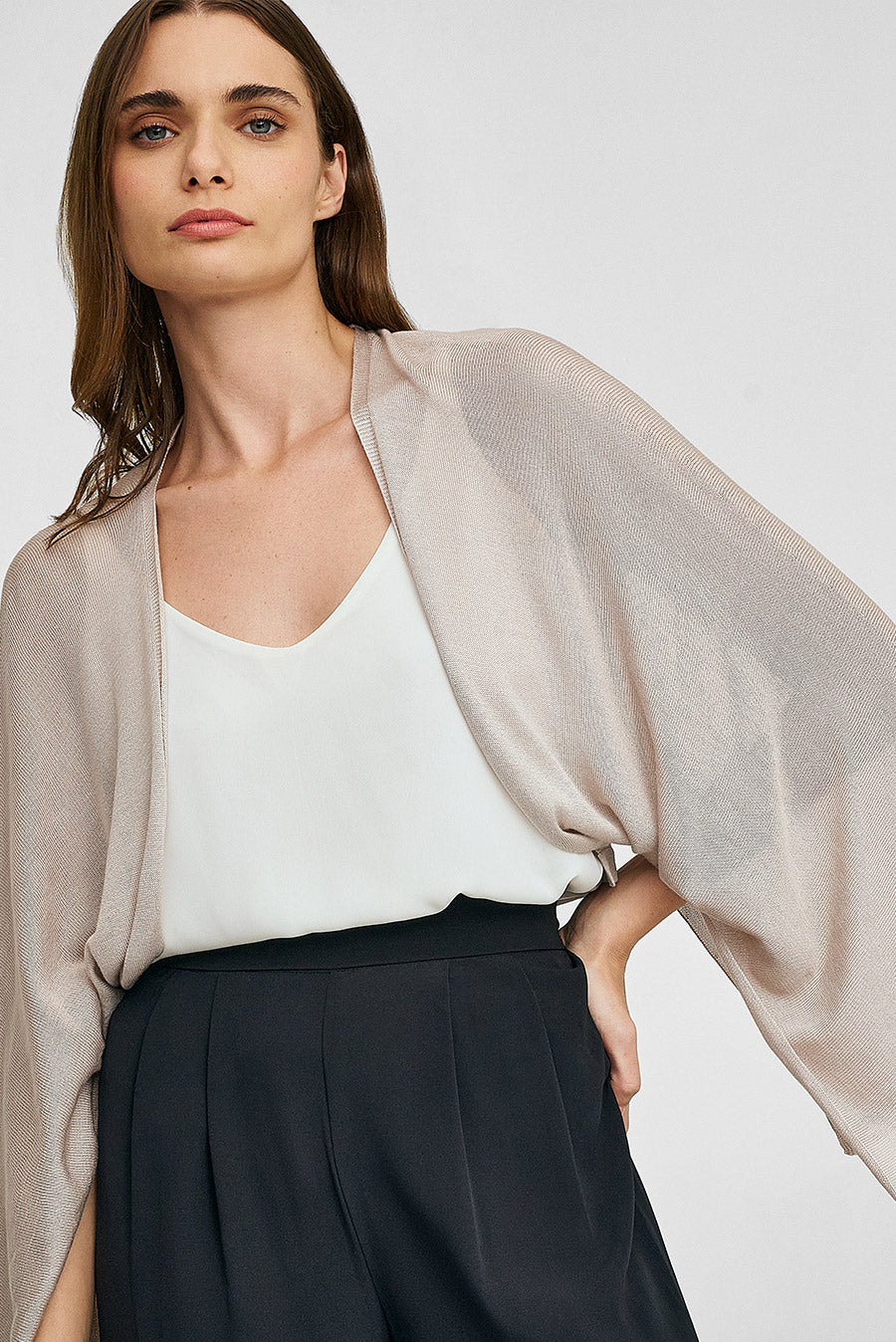 Cárdigan de manga ancha, hecho en 100% seda que además ofrece el confort y frescura ideal en cualquier estación. Su diseño la convierte en una prenda única. Disponible en dos hermosos, cálidos y combinables colores. Wharton es la pieza ideal para lucirla en momentos especiales. | Material predominante: Seda