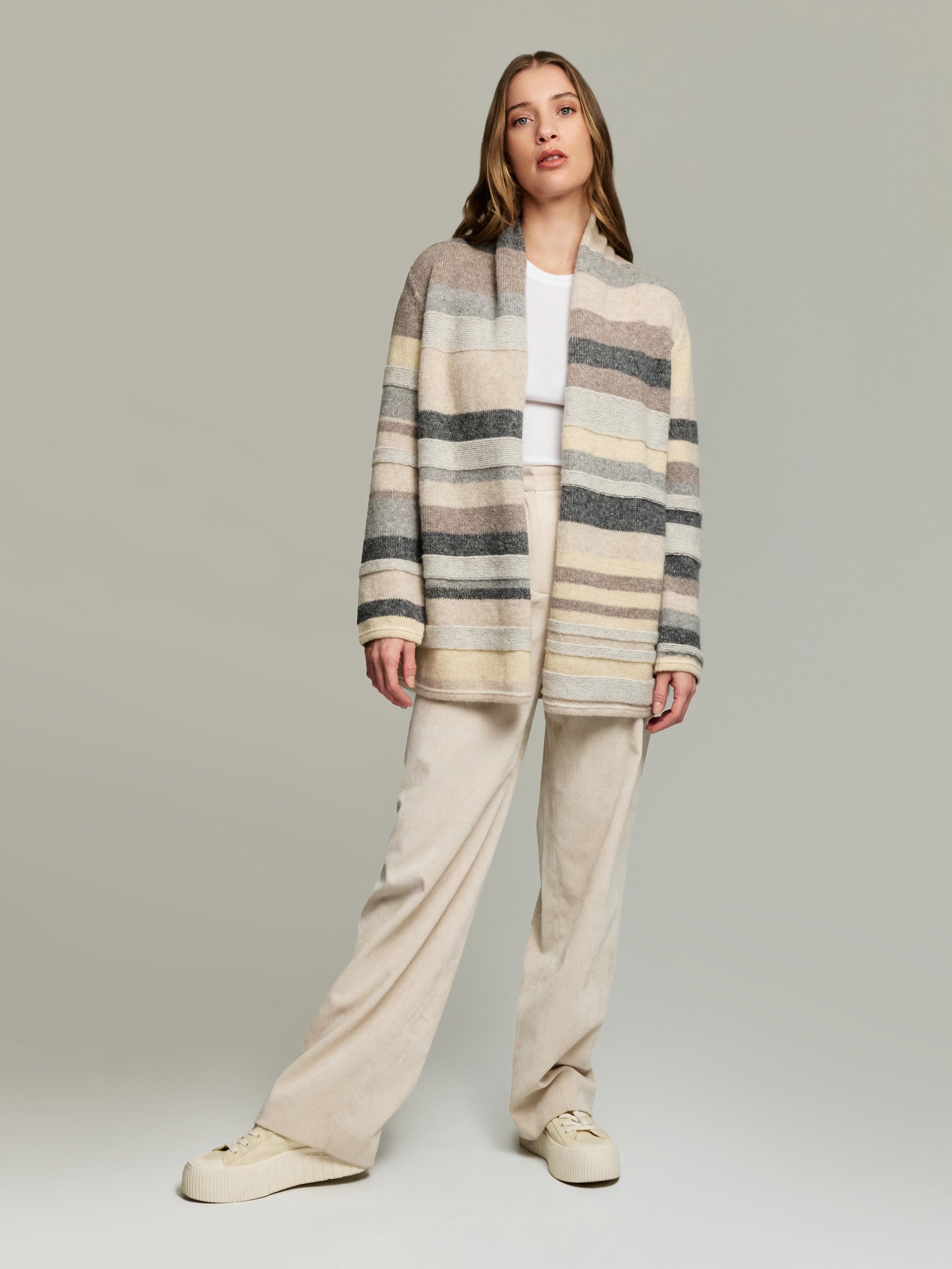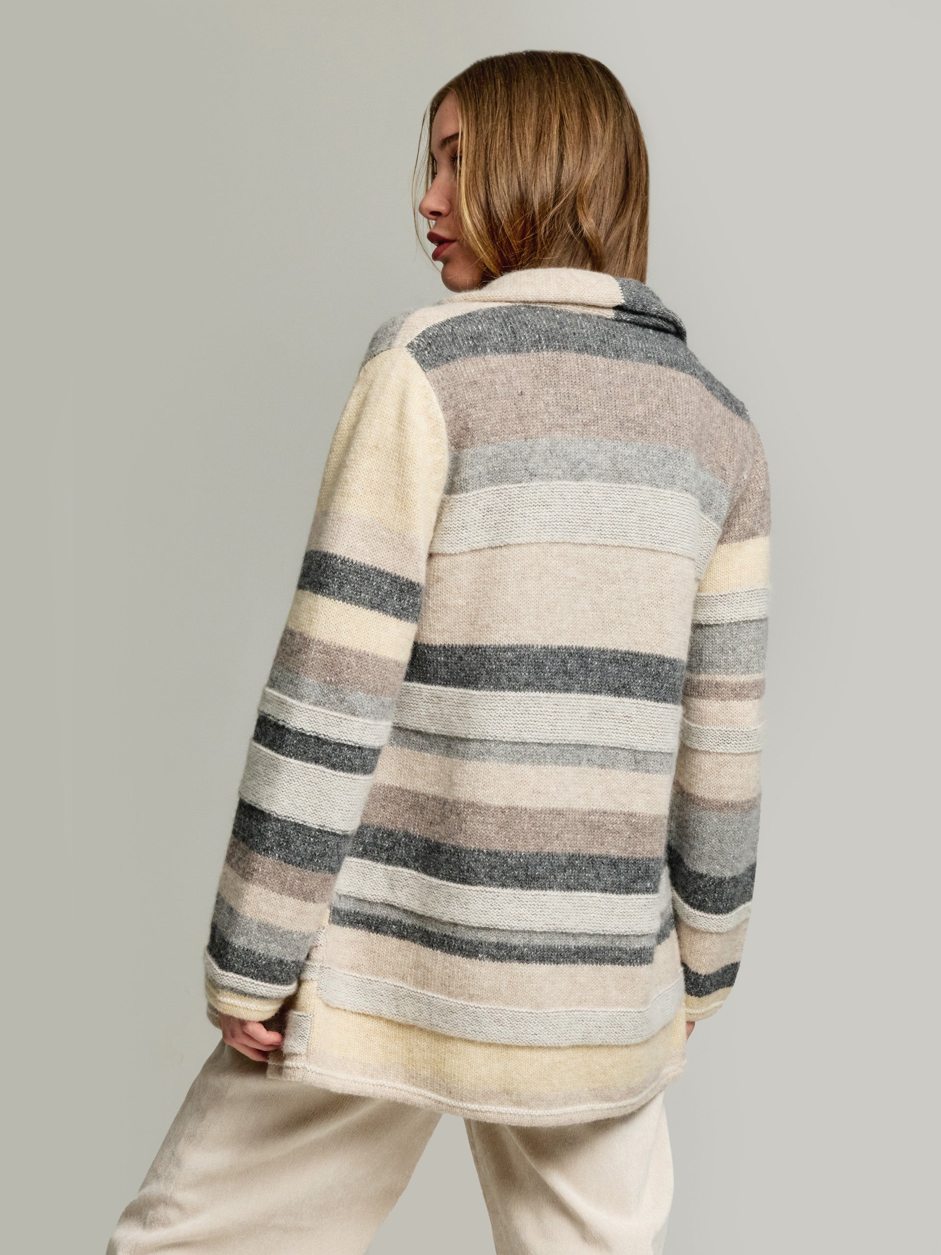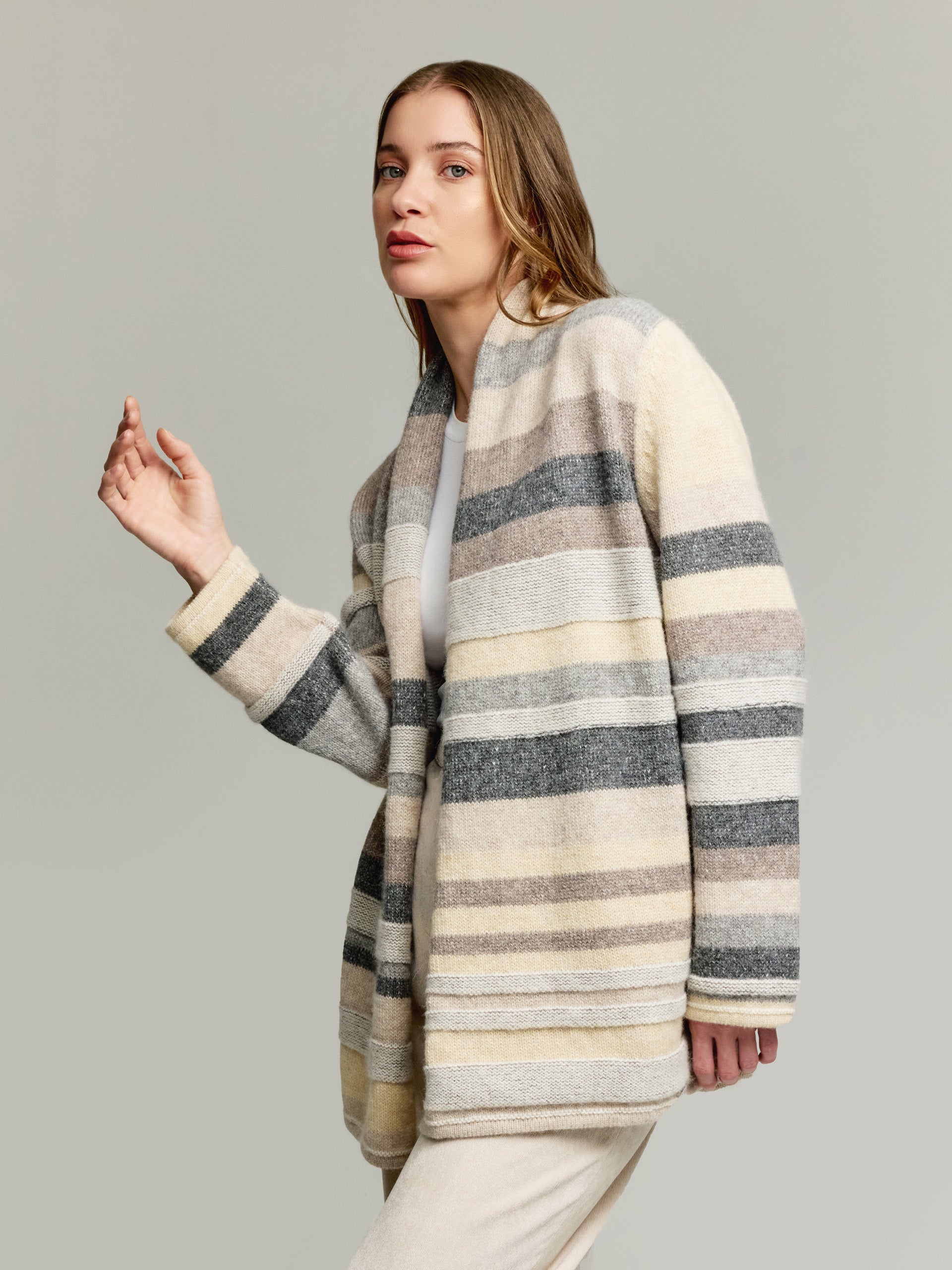 El cárdigan Yesterday es una prenda bien diseñada y pensada, que equilibra estilo, comodidad y versatilidad. Su capacidad para complementar cualquier look y adaptarse a diferentes momentos lo convierte en una elección atractiva para los consumidores. Elaborada en 100% baby alpaca. | Material predominante: Baby Alpaca