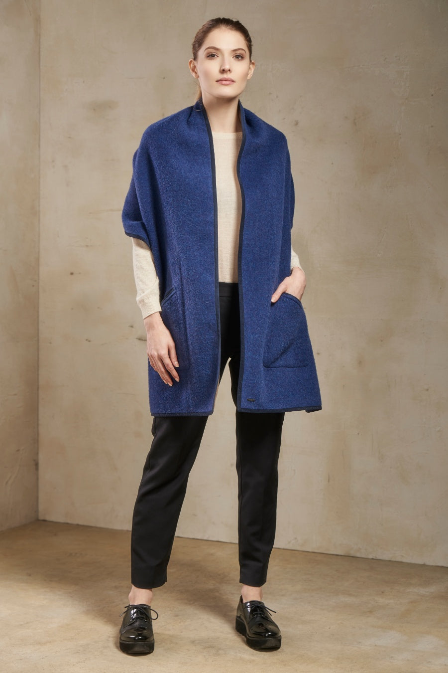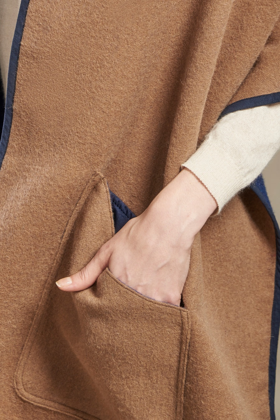 Reversible cape with a bold design made in Baby Alpaca and wool. With ample pockets and alcantara details, it will be the garment that will give a touch of style to your casual outings.